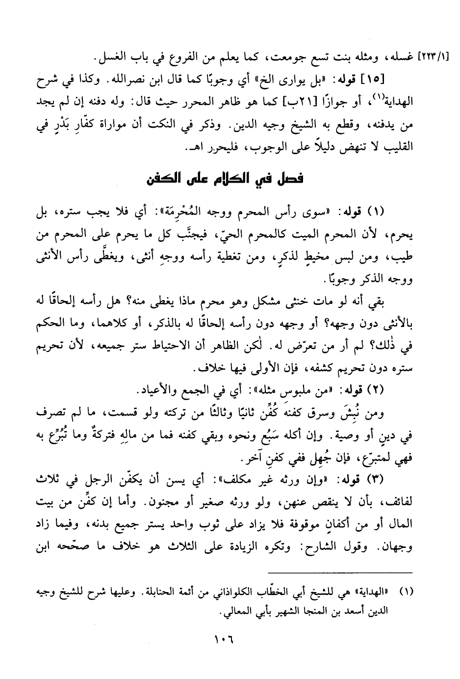 (¬1) "الهداية" هي للشيخ أبي الخطاب الكلواذاني من أئمة الحنابلة. وعليها شرح للشيخ وجيه الدين أسعد بن المنجا الشهير بأبي المعالي.