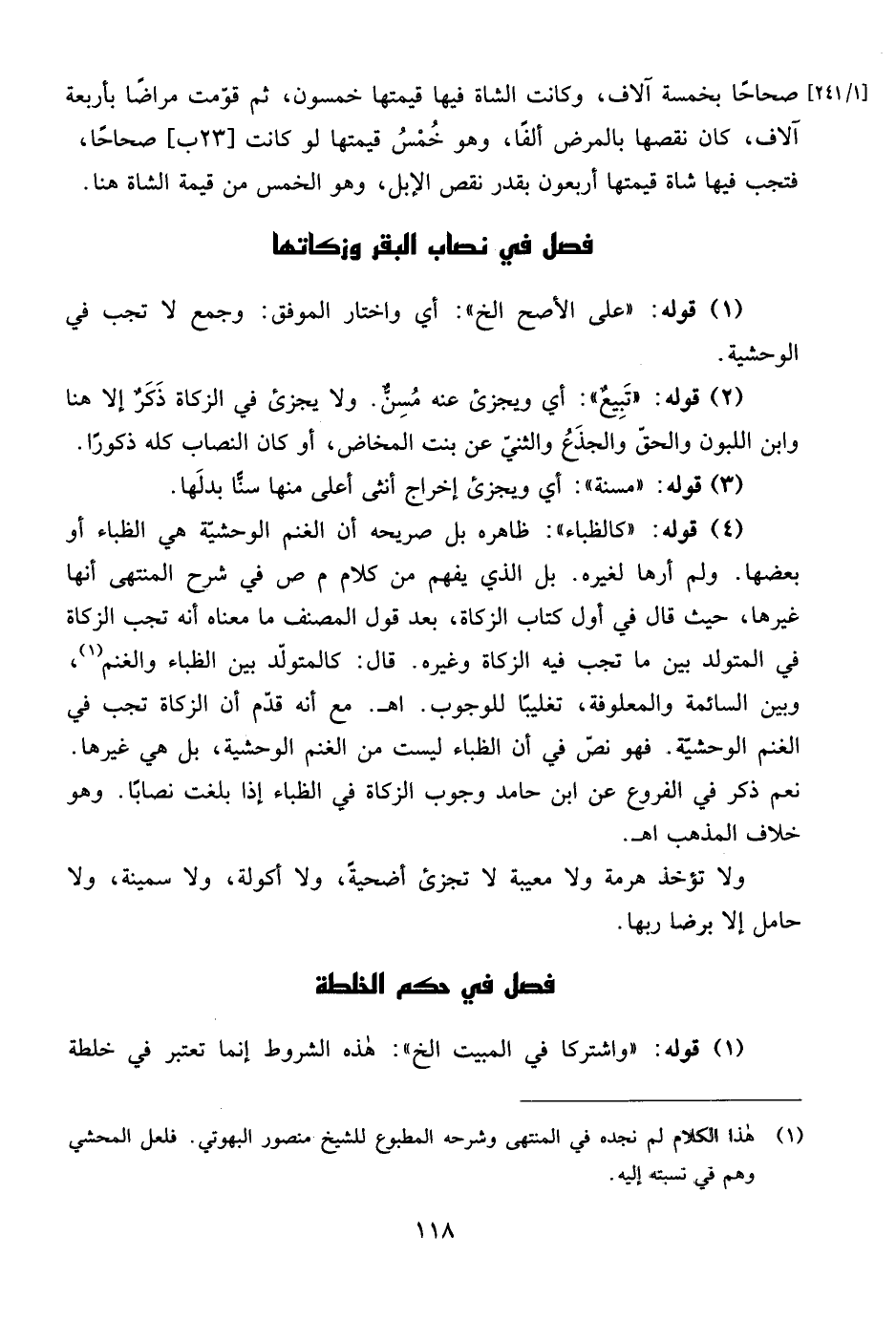(¬1) هذا الكلام لم نجده في المنتهى وشرحه المطبوع للشيخ منصور البهوتي. فلعل المحشي وهم في. تسبته إليه.