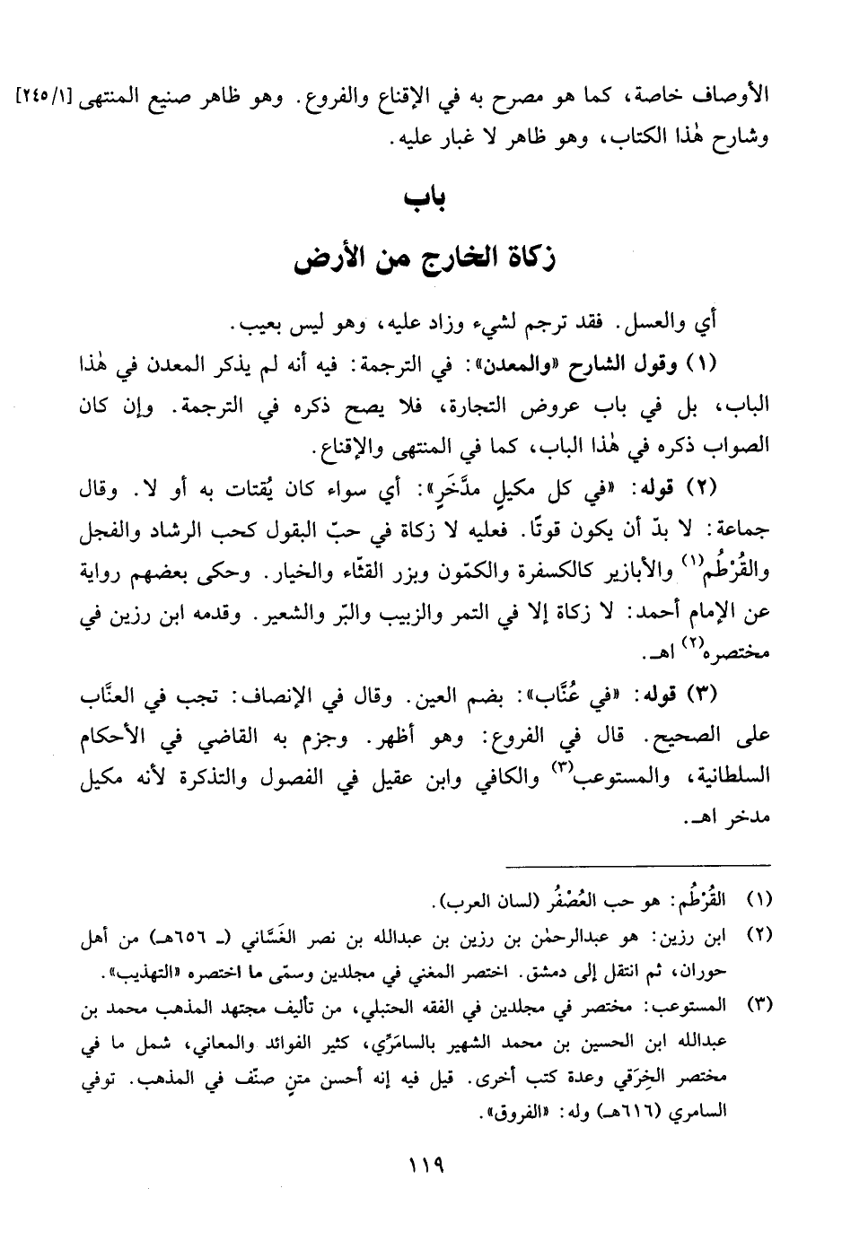 (1) وقول الشارح "والمعدن": في الترجمة: فيه أنه لم يذكر المعدن في هذا الباب، بل في باب عروض التجارة، فلا يصح ذكره في الترجمة. وإن كان الصواب ذكره في هذا الباب، كما في المنتهى والإقناع.