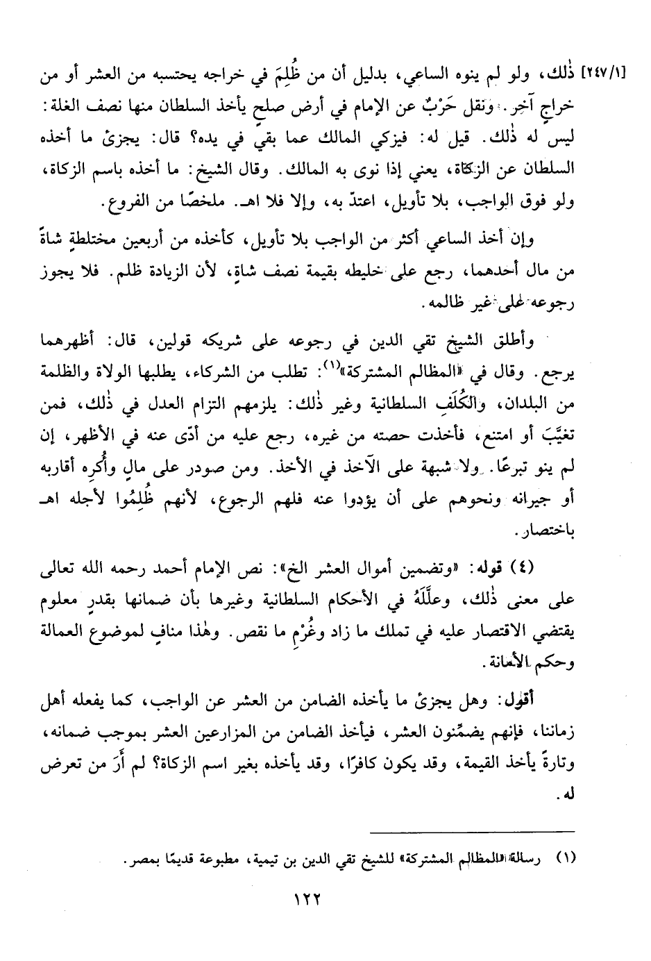 (¬1) رسالة "المظالم المشتركة" للشيخ تقي الدين بن تيمية، مطبوعة قديمًا بمصر.