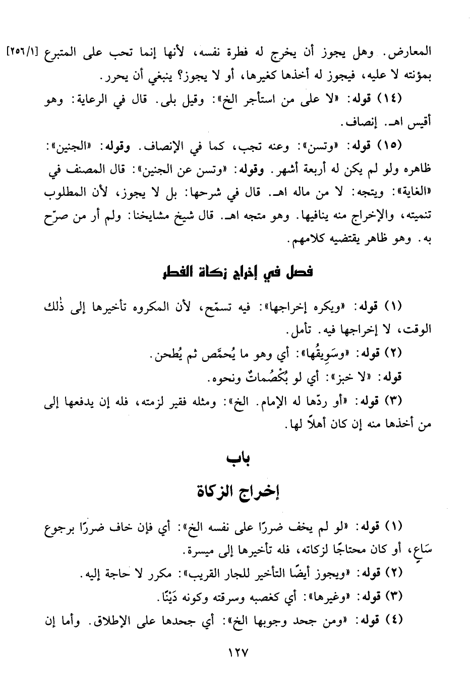 المعارض. وهل يجوز أن يخرج له فطرة نفسه، لأنها إنما تجب على المتبرع [1/ 256] بمؤنته لا عليه، فيجوز له أخذها كغيرها، أو لا يجوز؟ ينبغي أن يحرر.