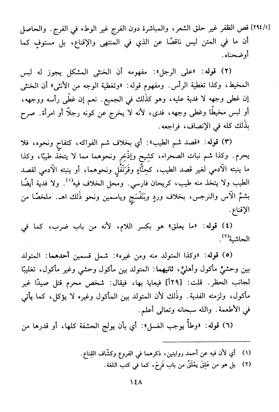 [1/ 294] قص الظفر غير حلق الشعر، والمباشرة دون الفرج غير الوطء في الفرج. والحاصل أن ما في المتن ليس ناقصًا عن الذي في المنتهى والإقناع، بل مستوفٍ كما أوضحناه.