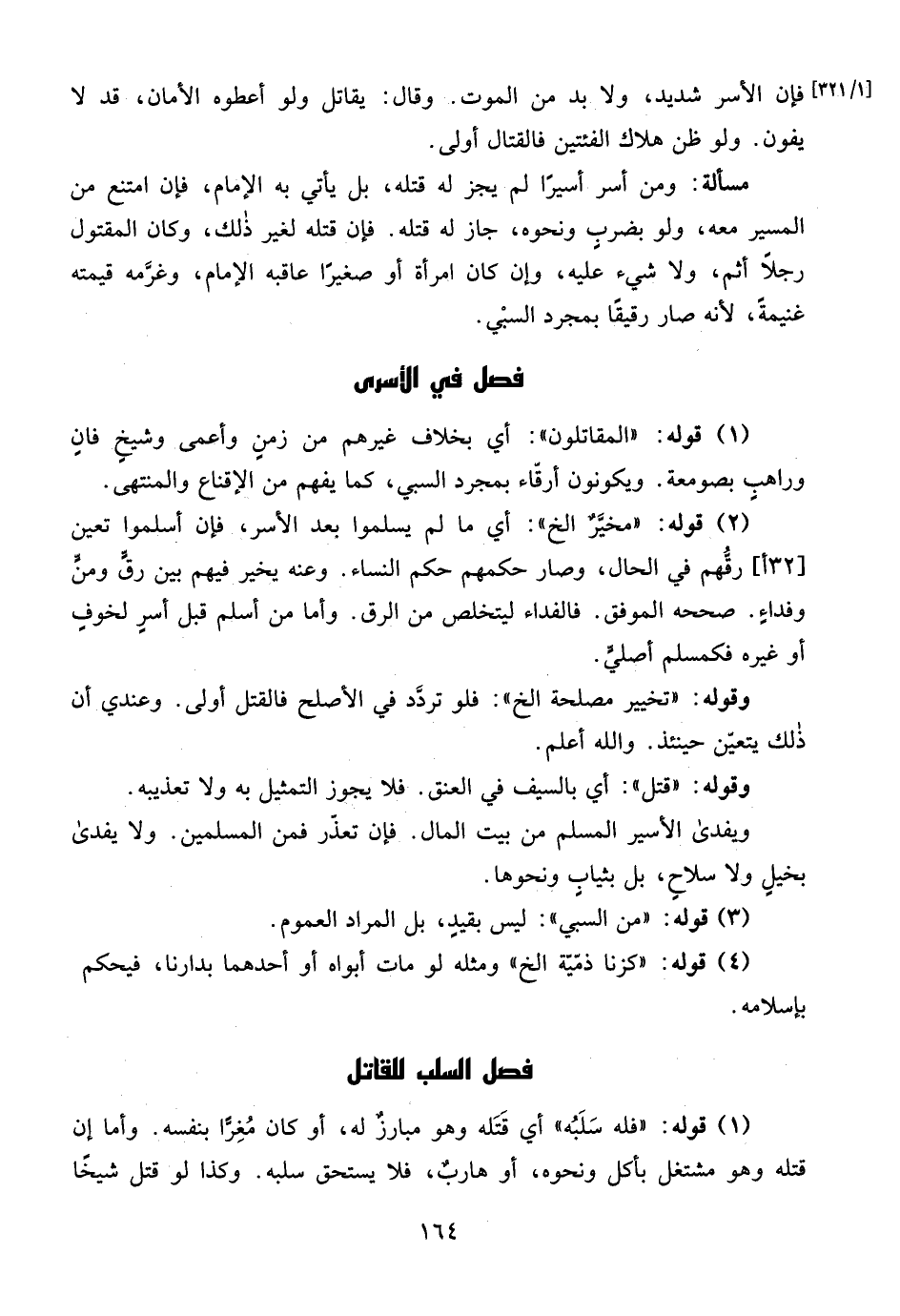 (1) قوله: "المقاتلون": أي بخلاف غيرهم من زمنٍ وأعمى وشيخٍ فانٍ وراهبٍ بصومعة. ويكونون أرقاء بمجرد السبي، كما يفهم من الإقناع والمنتهى.