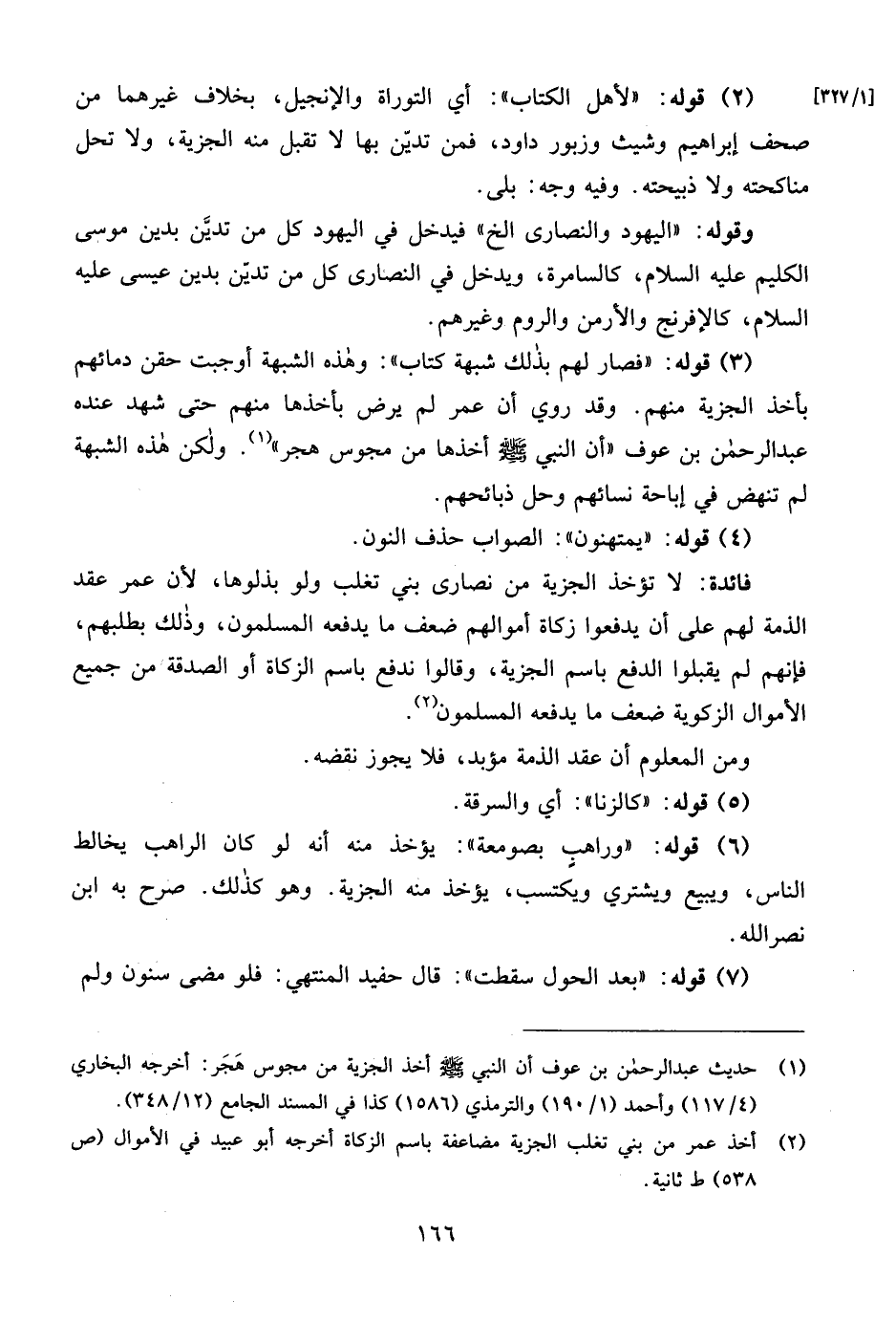 (¬1) حديث عبد الرحمن بن عوف أن النبي - صلى الله عليه وسلم - أخذ الجزية من مجوس هَجَر: أخرجه البخاري (4/ 117) وأحمد (1/ 190) والترمذي (1586) كذا في المسند الجامع (12/ 348).