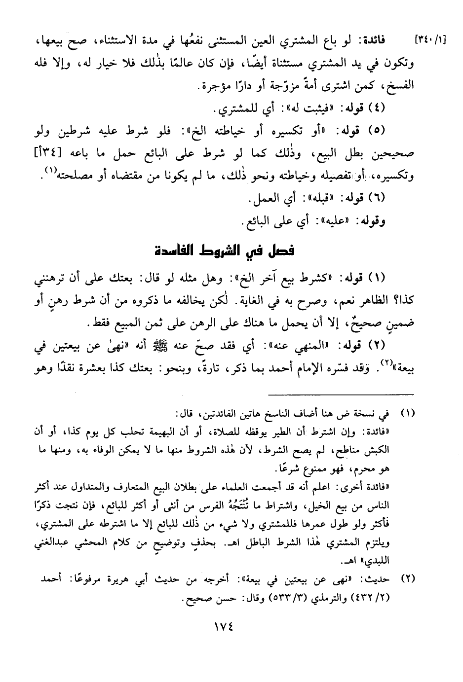 (2) قوله: "المنهي عنه": أي فقد صحّ عنه - صلى الله عليه وسلم - أنه "نهى عن بيعتين في بيعة" (¬2). وقد فسّره الإمام أحمد بما ذكر، تارةً، وبنحو: بعتك كذا بعشرة نقذًا وهو