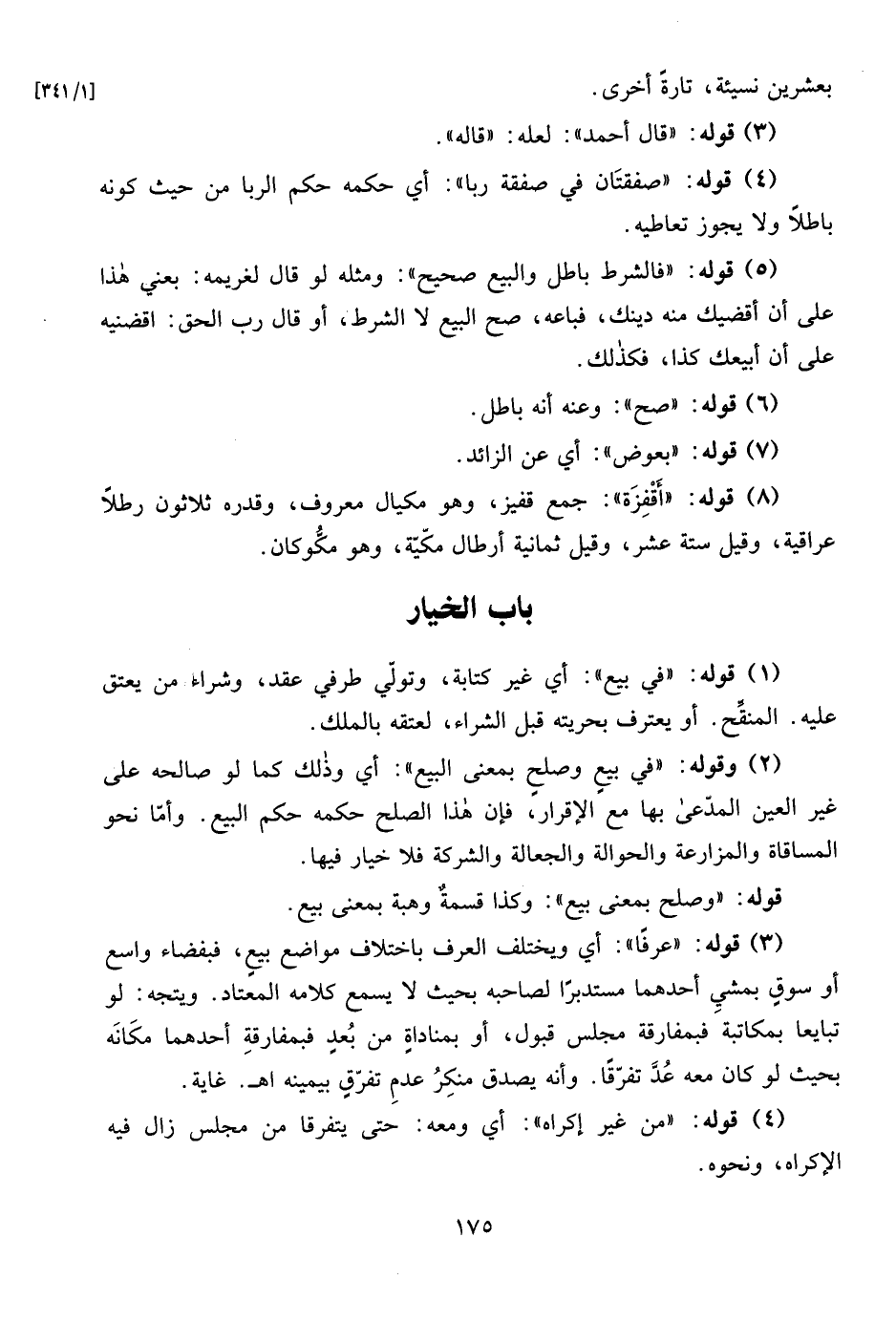 (3) قوله: "عرفًا": أي ويختلف العرف باختلاف مواضع بيعٍ، فبفضاء واسع أو سوقٍ بمشيِ أحدهما مستدبرًا لصاحبه بحيث لا يسمع كلامه المعتاد. ويتجه: لو تبايعا بمكاتبة فبمفارقة مجلس قبول، أو بمناداةٍ من بُعدٍ فبمفارقةِ أحدهما مكَانَه بحيث لو كان معه عُدَّ تفرّقًا. وأنه يصدق منكِرُ عدمِ تفرّقٍ بيمينه اهـ. غاية.