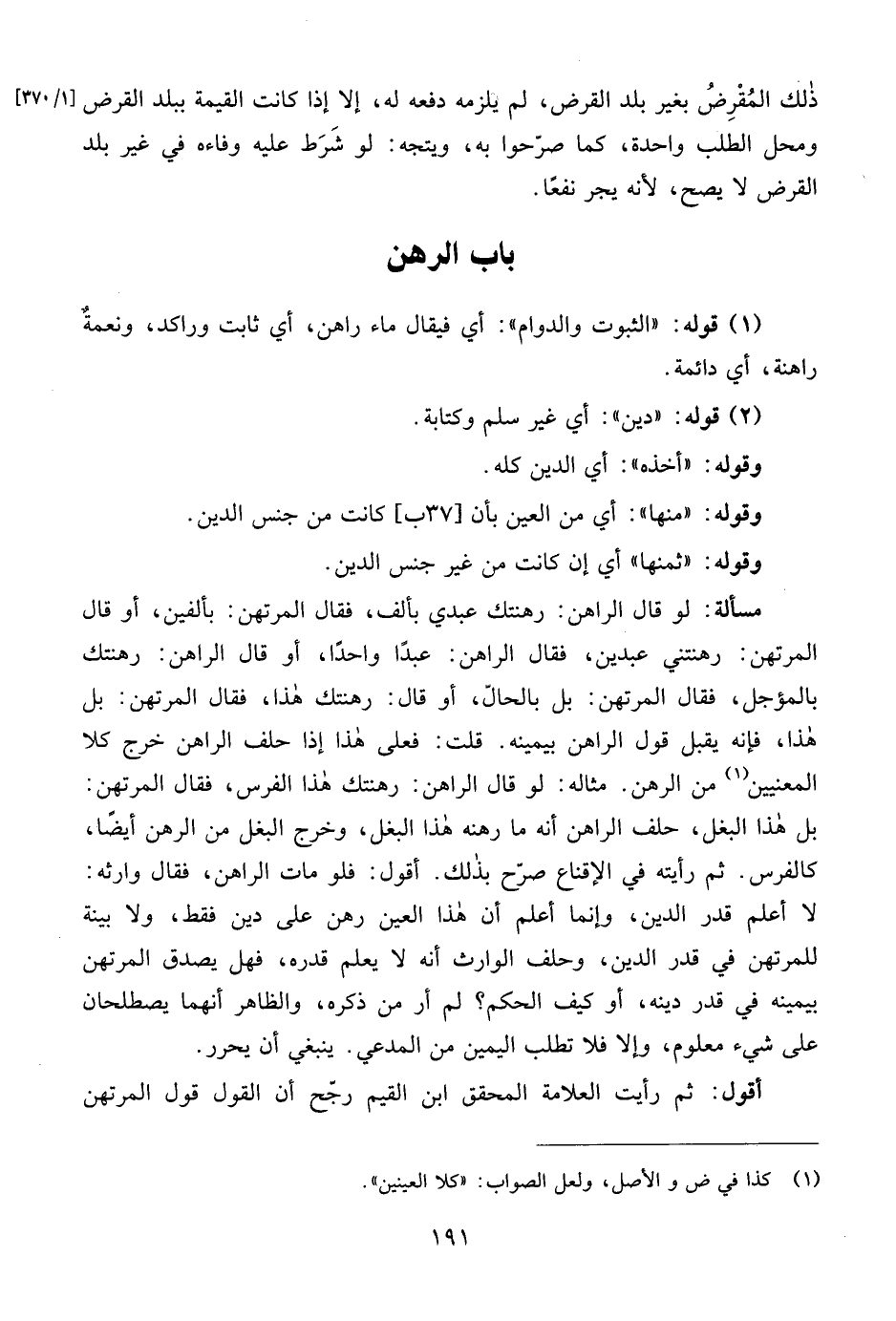 ذلك المُقْرِضُ بغير بلد القرض، لم يلزمه دفعه له، إلا إذا كانت القيمة ببلد القرض [1/ 370] ومحل الطلب واحدة، كما صرّحوا به، ويتجه: لو شَرَط عليه وفاءه في غير بلد القرض لا يصح، لأنه يجر نفعًا.