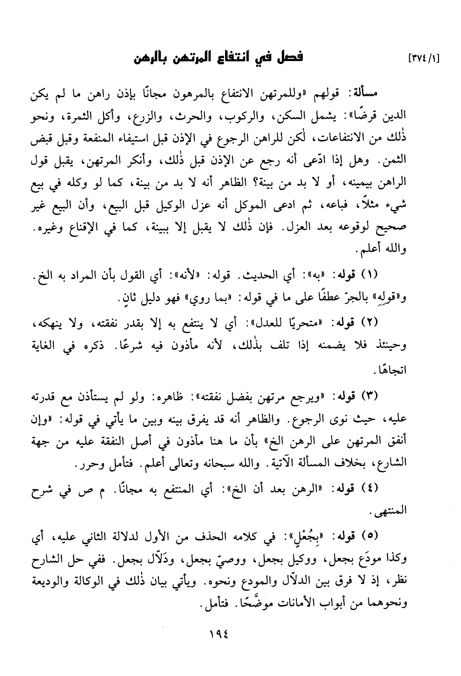 فصل فيهه انتفاع المرتهن بالرهن