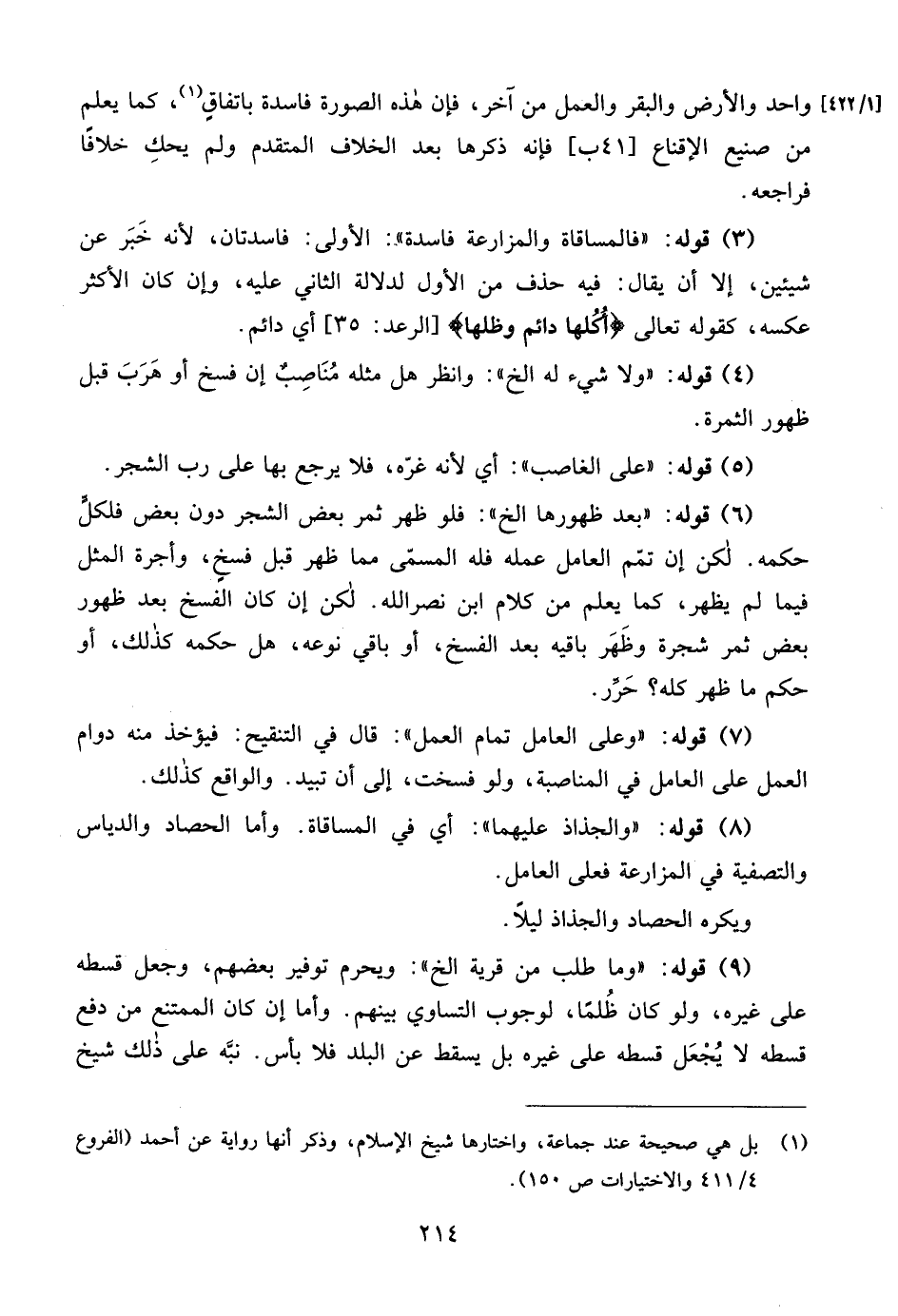 [1/ 422] واحد والأرض والبقر والعمل من آخر، فإن هذه الصورة فاسدة باتفاقٍ (¬1)، كما يعلم من صنيع الإقناع [41ب] فإنه ذكرها بعد الخلاف المتقدم ولم يحكِ خلافًا فراجعه.