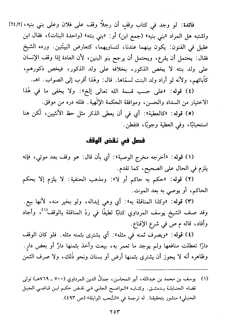 (¬1) يوسف بن محمد بن عبد الله، أبو المحاسن، جمالُ الدين المرداوي (700 - 769 هـ) تولى قضاء الحنابلة بدمشق. وكتابه "الواضح الجلي في نقض حكم ابن قاضي الجبل الحنبلي" منشور بتحقيقنا. له ترجمة في "السُّحب الوابلة" (ص 493).