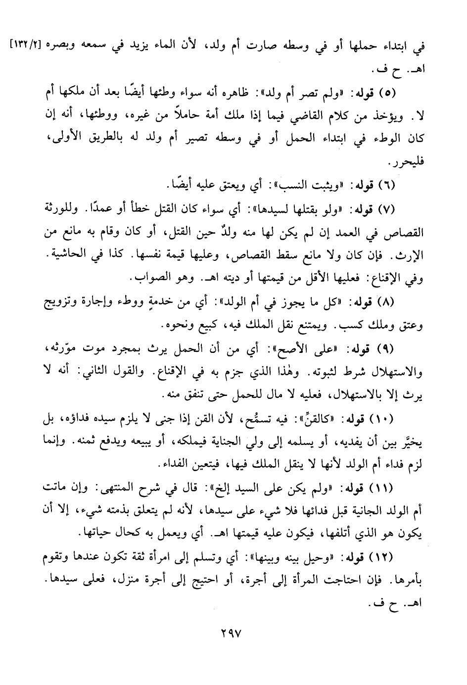 (5) قوله: "ولم تصر أم ولد": ظاهره أنه سواء وطئها أيضًا بعد أن ملكها أم لا. ويؤخذ من كلام القاضي فيما إذا ملك أمة حاملاً من غيره، ووطئها، أنه إن كان الوطء في ابتداء الحمل أو في وسطه تصير أم ولد له بالطريق الأولى، فليحرر.