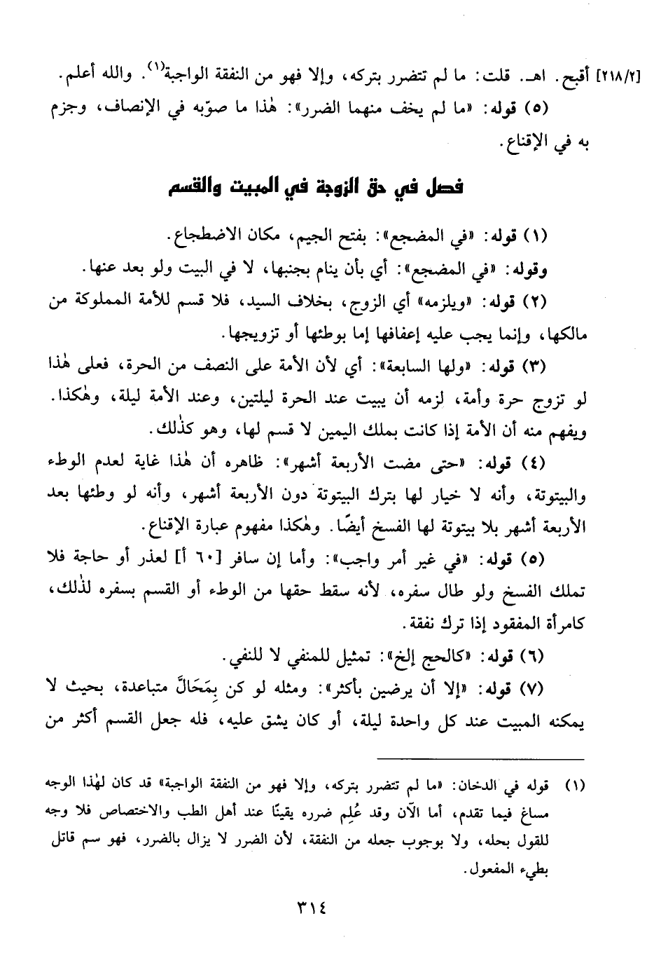 [2/ 218] أقبح. اهـ. قلت: ما لم تتضرر بتركه، وإلا فهو من النفقة الواجبة (¬1). والله أعلم.