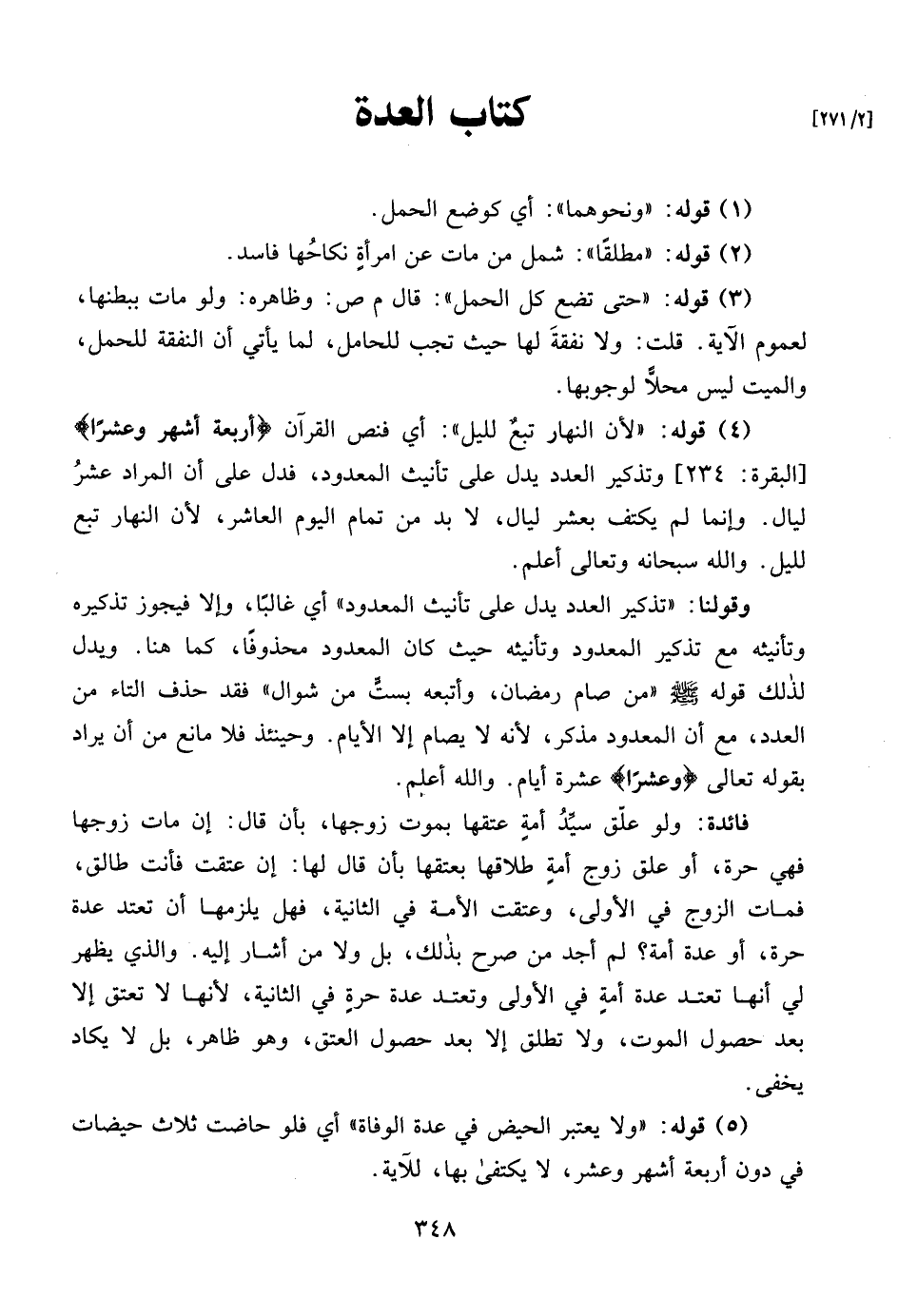 (4) قوله: "لأن النهار تبع لليل": أي فنص القرآن {أربعة أشهر وعشرًا} [البقرة: 234] وتذكير العدد يدل على تأنيث المعدود، فدل على أن المراد عشرُ ليال. وإنما لم يكتف بعشر ليال، لا بد من تمام اليوم العاشر، لأن النهار تبع لليل. والله سبحانه وتعالى أعلم.