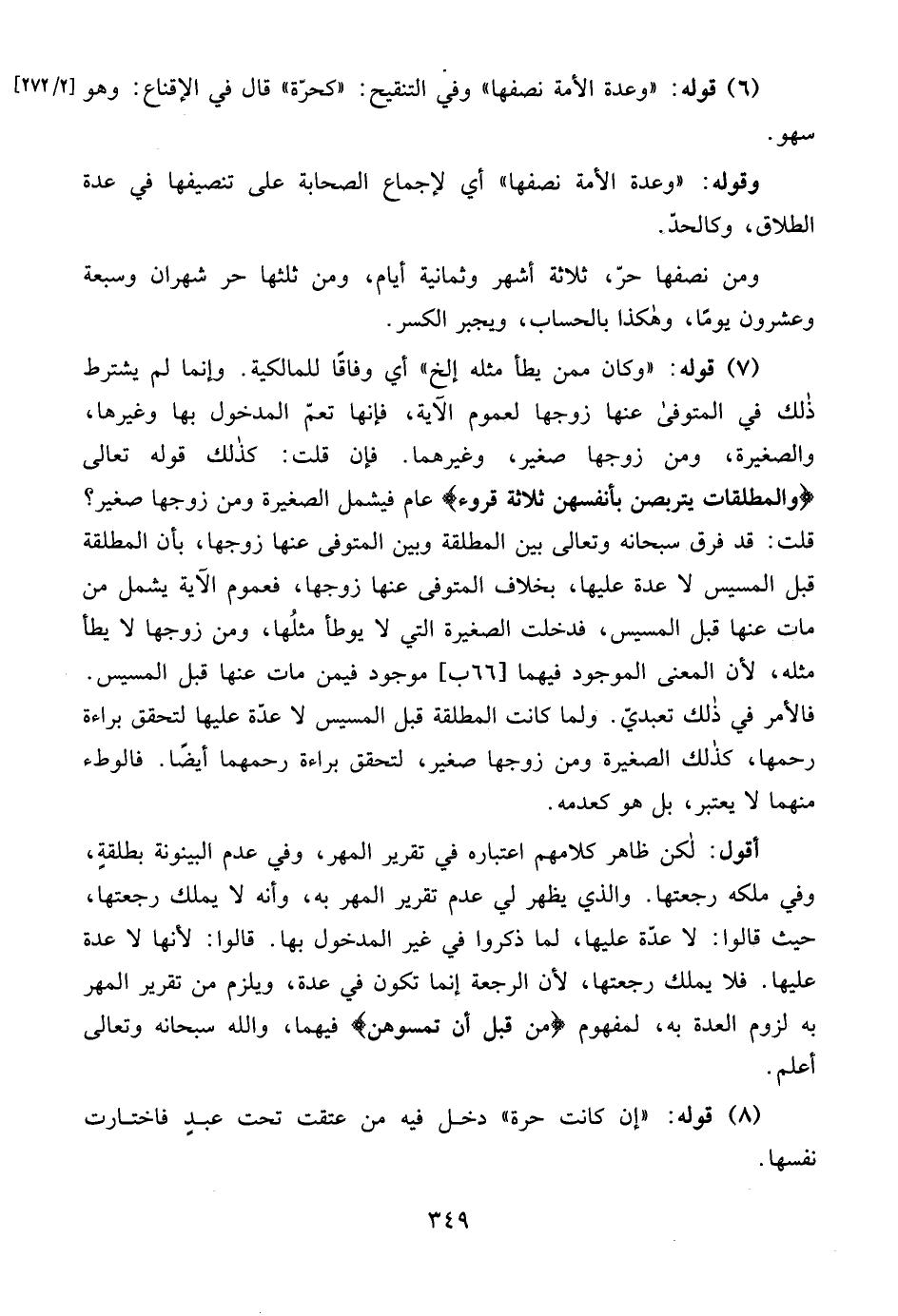 (6) قوله: "وعدة الأمة نصفها" وفي التنقيح: "كحرّة" قال في الإقناع: وهو [2/ 272] سهو.