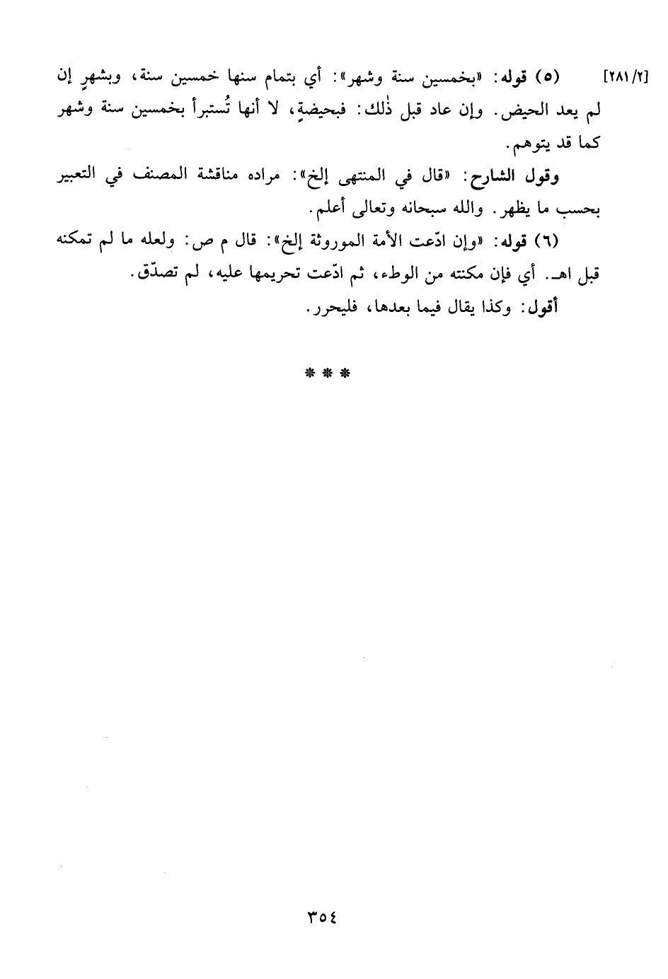 (5) قوله: "بخمسين سنة وشهر": أي بتمام سنها خمسين سنة، وبشهرٍ إن لم يعد الحيض. وإن عاد قبل ذلك: فبحيضةٍ، لا أنها تُستبرأ بخمسين سنة وشهر كما قد يتوهم.