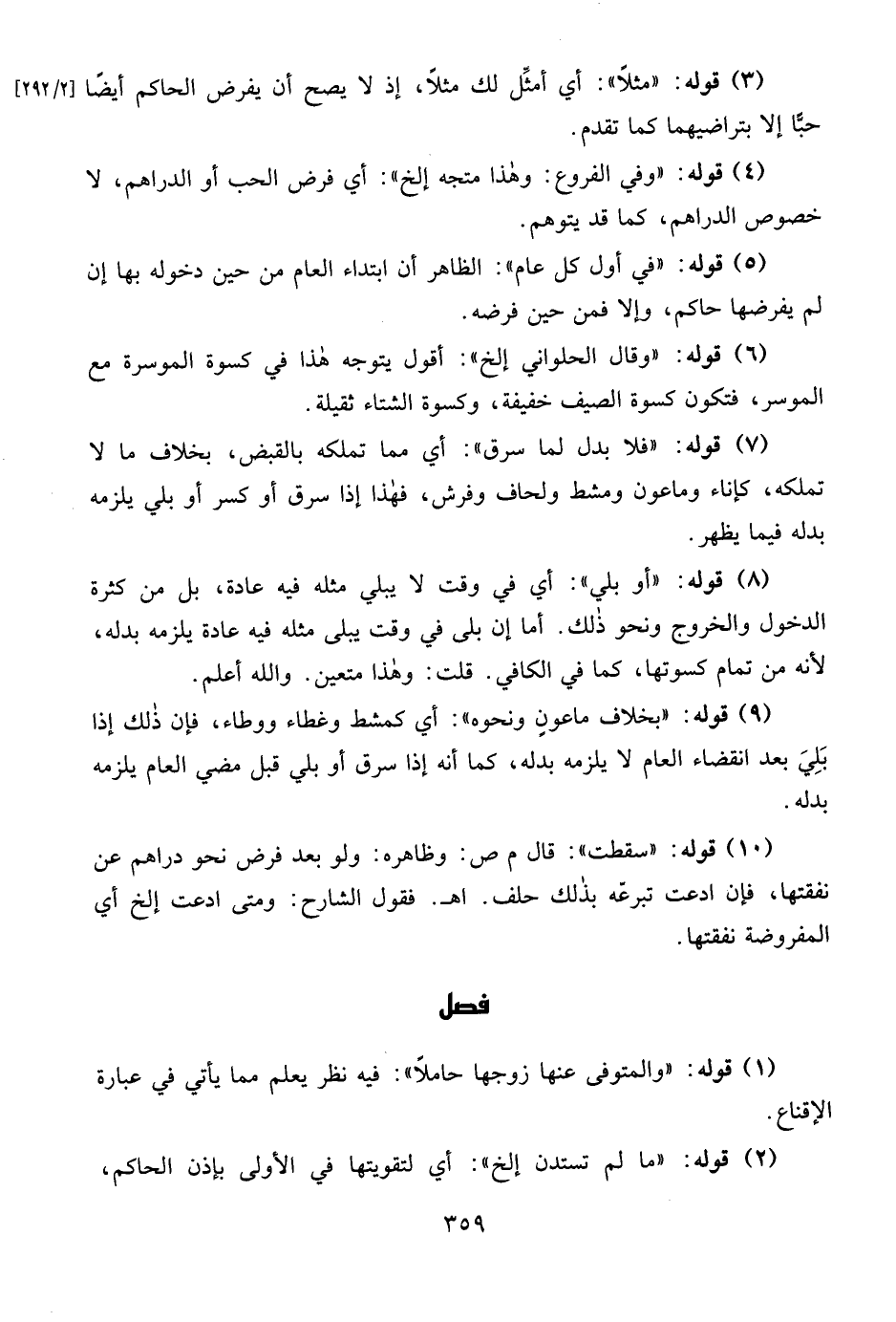 (9) قوله: "بخلاف ماعونٍ ونحوه": أي كمشط وغطاء ووطاء، فإن ذلك إذا بَلِيَ بعد انقضاء العام لا يلزمه بدله، كما أنه إذا سرق أو بلي قبل مضي العام يلزمه بدله.