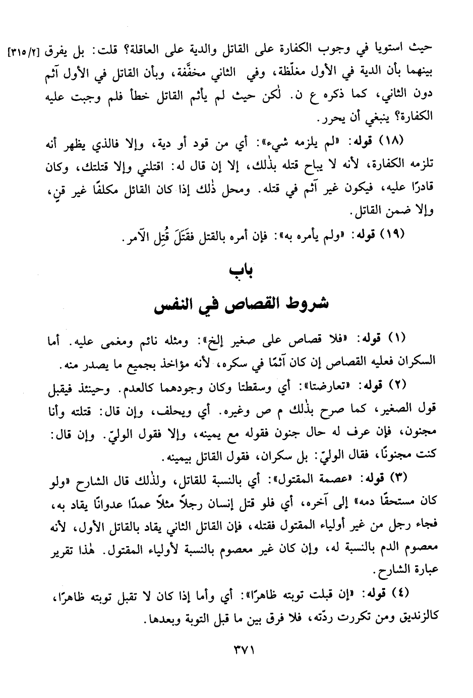 (3) قوله: "عصمة المقتول": أي بالنسبة للقاتل، ولذلك قال الشارح "ولو كان مستحقًا دمه" إلى آخره، أي فلو قتل إنسان رجلاً مثلاً عمدًا عدوانًا يقاد به، فجاء رجل من غير أولياء المقتول فقتله، فإن القاتل الثاني يقاد بالقاتل الأول، لأنه معصوم الدم بالنسبة له، وإن كان غير معصوم بالنسبة لأولياء المقتول. هذا تقرير عبارة الشارح.