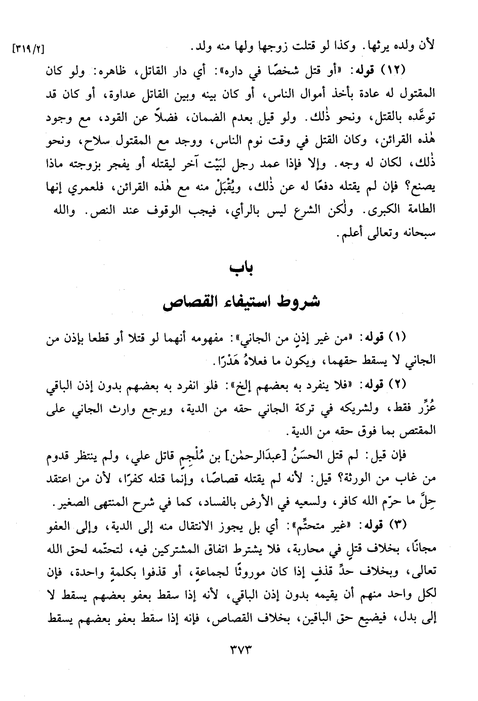 باب شروط استيفاء القصاص