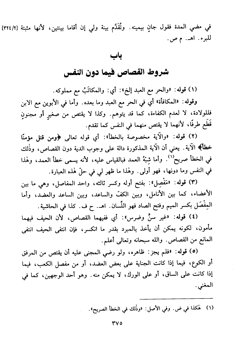 باب شروط القصاص فيما دون النفس