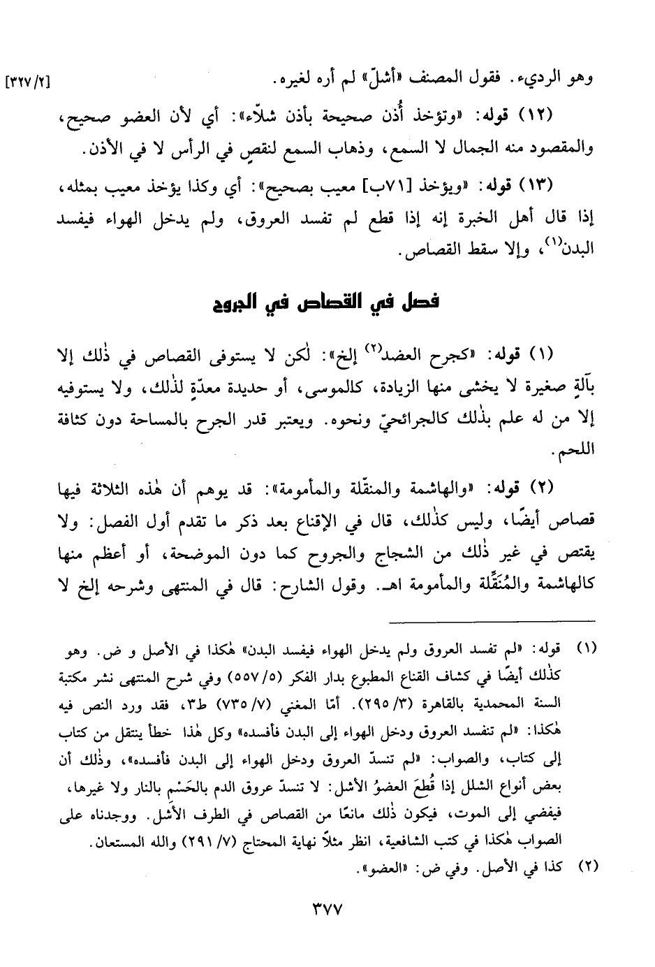 (2) قوله: "والهاشمة والمنقّلة والمأمومة": قد يوهم أن هذه الثلاثة فيها قصاص أيضًا، وليس كذلك، قال في الإقناع بعد ذكر ما تقدم أول الفصل: ولا يقتص في غير ذلك من الشجاج والجروح كما دون الموضحة، أو أعظم منها كالهاشمة والمُنَقِّلة والمأمومة اهـ. وقول الشارح: قال في المنتهى وشرحه إلخ لا