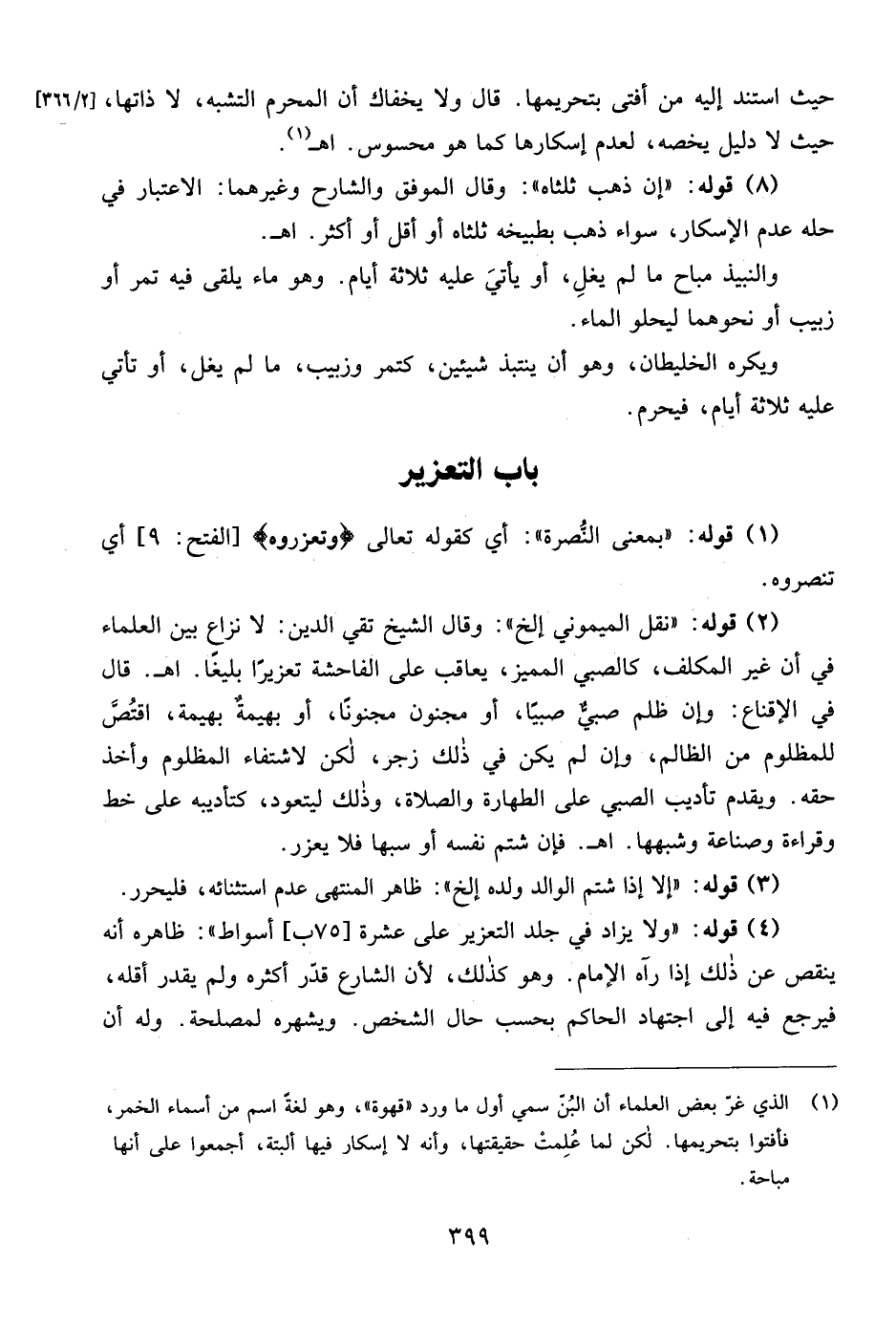 (¬1) الذي غرّ بعض العلماء أن البُنّ سمي أول ما ورد "قهوة"، وهو لغةً اسم من أسماء الخمر، فأفتوا بتحريمها. لكن لما عُلِمتْ حقيقتها، وأنه لا إسكار فيها ألبتة، أجمعوا على أنها مباحة.