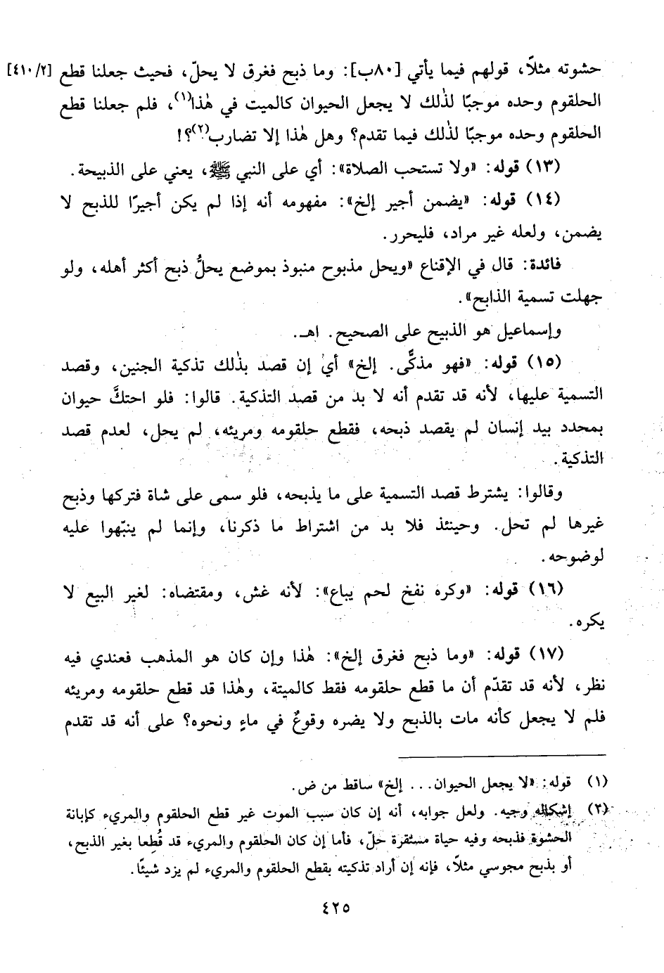 (13) قوله: "ولا تستحب الصلاة": أي على النبي - صلى الله عليه وسلم -، يعني على الذبيحة.
