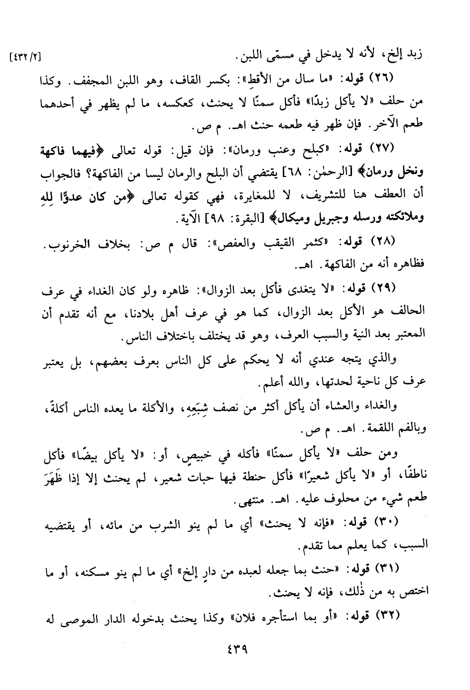 (30) قوله: "فإنه لا يحنث" أي ما لم ينو الشرب من مائه، أو يقتضيه السبب، كما يعلم مما تقدم.