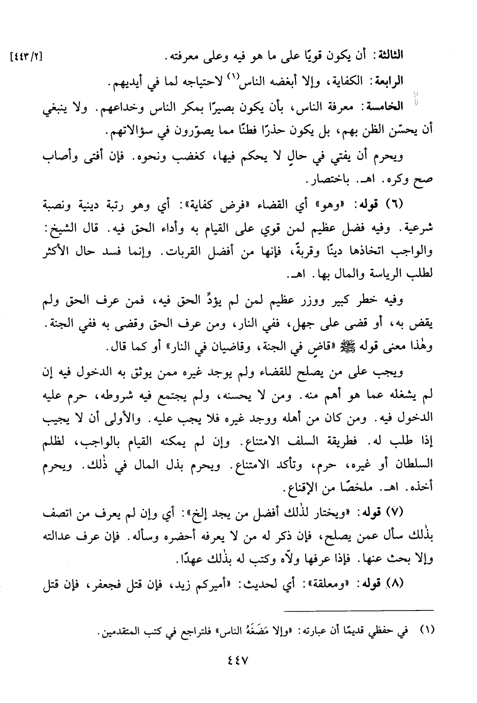 وهذا معنى قوله - صلى الله عليه وسلم - "قاضٍ في الجنة، وقاضيان في النار" أو كما قال.