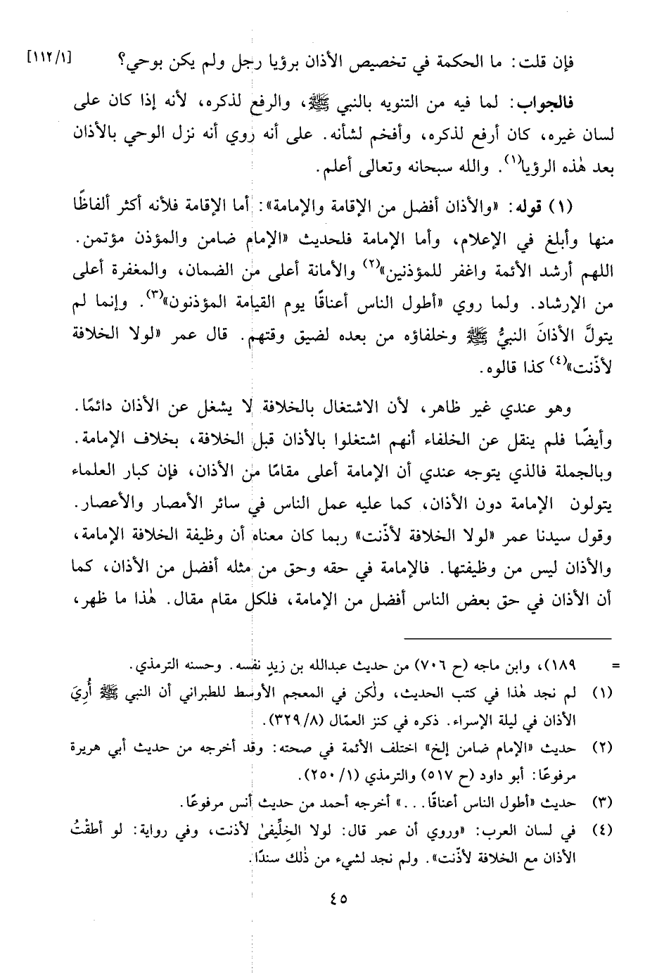 (1) قوله: "والأذان أفضل من الإقامة والإمامة": أما الإقامة فلأنه أكثر ألفاظًا منها وأبلغ في الإعلام، وأما الإمامة فلحديث "الإمام ضامن والمؤذن مؤتمن.
