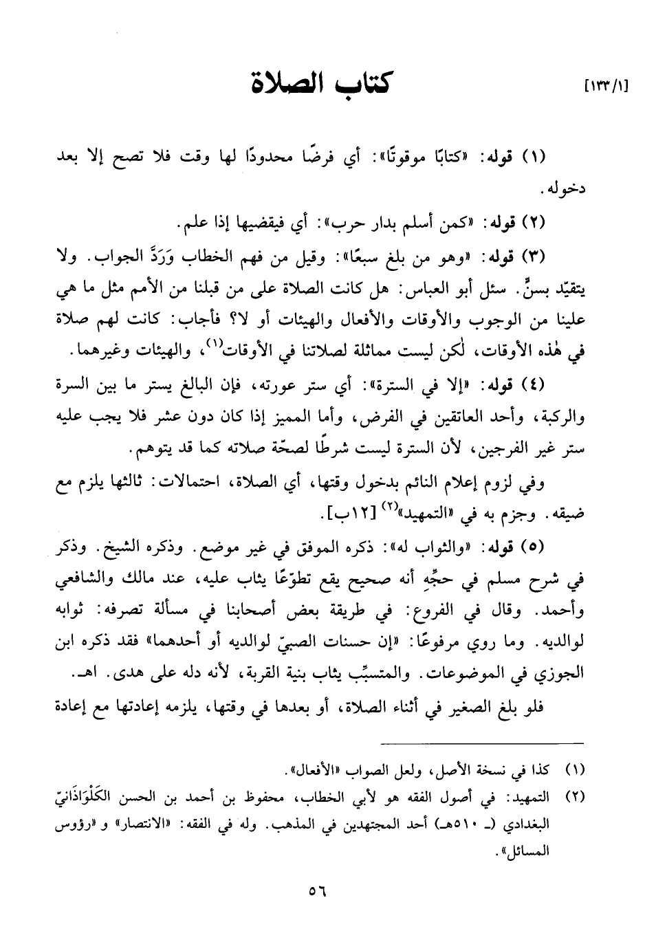 (¬2) التمهيد: في أصول الفقه هو لأبي الخطاب، محفوظ بن أحمد بن الحسن الكَلْوَاذَانيّ البغدادي (- 510 هـ) أحد المجهدين في المذهب. وله في الفقه: "الانتصار" و "رؤوس المسائل".