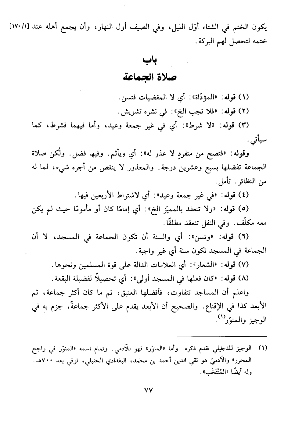 (¬1) الوجيز للدجيلي تقدم ذكره. وأما "المنوّر" فهو للآدمي. وتمام اسمه "المنوّر في راجح المحرر" والآدمي هو تقي الدين أحمد بن محمد، البغدادي الحنبلي، توفي بعد 700 هـ. وله أيضًا "المُنْتَخَب".