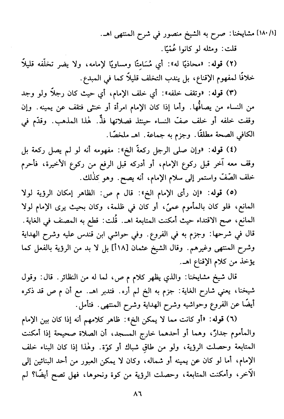 [1/ 180] مشايخنا: صرح به الشيخ منصور في شرح المنتهى اهـ.