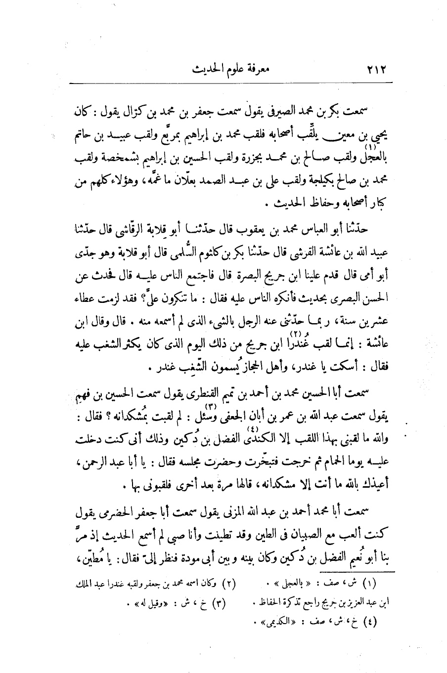 حَدَّثَنَا أَبُو الْعَبَّاسِ مُحَمَّدُ بْنُ يَعْقُوبَ قَالَ: حَدَّثَنَا أَبُو قِلَابَةَ الرَّقَاشِيُّ قَالَ: حَدَّثَنَا عُبَيْدُ اللَّهِ بْنُ عَائِشَةَ الْقُرَشِيُّ قَالَ: حَدَّثَنَا بَكْرُ بْنُ كُلْثُومٍ السُّلَمِيُّ قَالَ: أَبُو قِلَابَةَ وَهُوَ جَدِّي أَبُو أُمِّي، قَالَ: " §قَدِمَ عَلَيْنَا ابْنُ جُرَيْجٍ الْبَصْرَةَ، قَالَ: فَاجْتَمَعَ النَّاسُ عَلَيْهِ، قَالَ: فَحَدَّثَ عَنِ الْحَسَنِ الْبَصْرِيِّ بِحَدِيثٍ، فَأَنْكَرَهُ النَّاسُ عَلَيْهِ، فَقَالَ: مَا تُنْكِرُونَ عَلَيَّ، فَقَدْ لَزِمْتُ عَطَاءً عِشْرِينَ سَنَةً، رُبَّمَا حَدَّثَنِي عَنْهُ الرَّجُلُ بِالشَّيْءِ الَّذِي لَمْ أَسْمَعْهُ مِنْهُ " قَالَ: وَقَالَ ابْنُ عَائِشَةَ: " إِنَّمَا لَقَّبَ غُنْدَرًا ابْنُ جُرَيْجٍ مِنْ ذَلِكَ الْيَوْمِ الَّذِي كَانَ يُكْثِرُ الشَّغَبَ عَلَيْهِ، فَقَالَ: اسْكُتْ يَا غُنْدَرُ، وَأَهْلُ الْحِجَازِ يُسَمُّونَ الشَّغِبَ غُنْدَرًا "