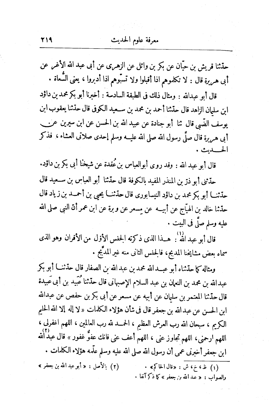 حَدَّثَنِي أَبُو ذَرِّ بْنُ الْمُنْذِرِ الْمُفِيدُ بِالْكُوفَةِ، قَالَ: حَدَّثَنَا أَبُو الْعَبَّاسِ بْنُ سَعِيدٍ قَالَ: حَدَّثَنَا أَبُو بَكْرٍ مُحَمَّدُ بْنُ دَاوُدَ النَّيْسَابُورِيُّ قَالَ: حَدَّثَنَا يَحْيَى بْنُ أَحْمَدَ بْنِ زِيَادٍ قَالَ: حَدَّثَنَا خَالِدُ بْنُ الْهَيَّاجِ , عَنْ أَبِيهِ , عَنْ مِسْعَرٍ , عَنْ وَبَرَةَ، عَنِ ابْنِ عُمَرَ أَنَّ النَّبِيَّ صَلَّى اللهُ عَلَيْهِ وَسَلَّمَ: §صَلَّى فِي الْبَيْتِ قَالَ أَبُو عَبْدِ اللَّهِ: هَذَا الَّذِي ذَكَرْتُهُ الْجِنْسَ الْأَوَّلَ مِنَ الْأَقْرَانِ، وَهُوَ الَّذِي سَمَّاهُ بَعْضُ مَشَايِخِنَا الْمُدَبَّجَ، فَالْجِنْسُ الثَّانِي مِنْهُ غَيْرُ الْمُدَبَّجِ، وَمِثَالُهُ كَمَا