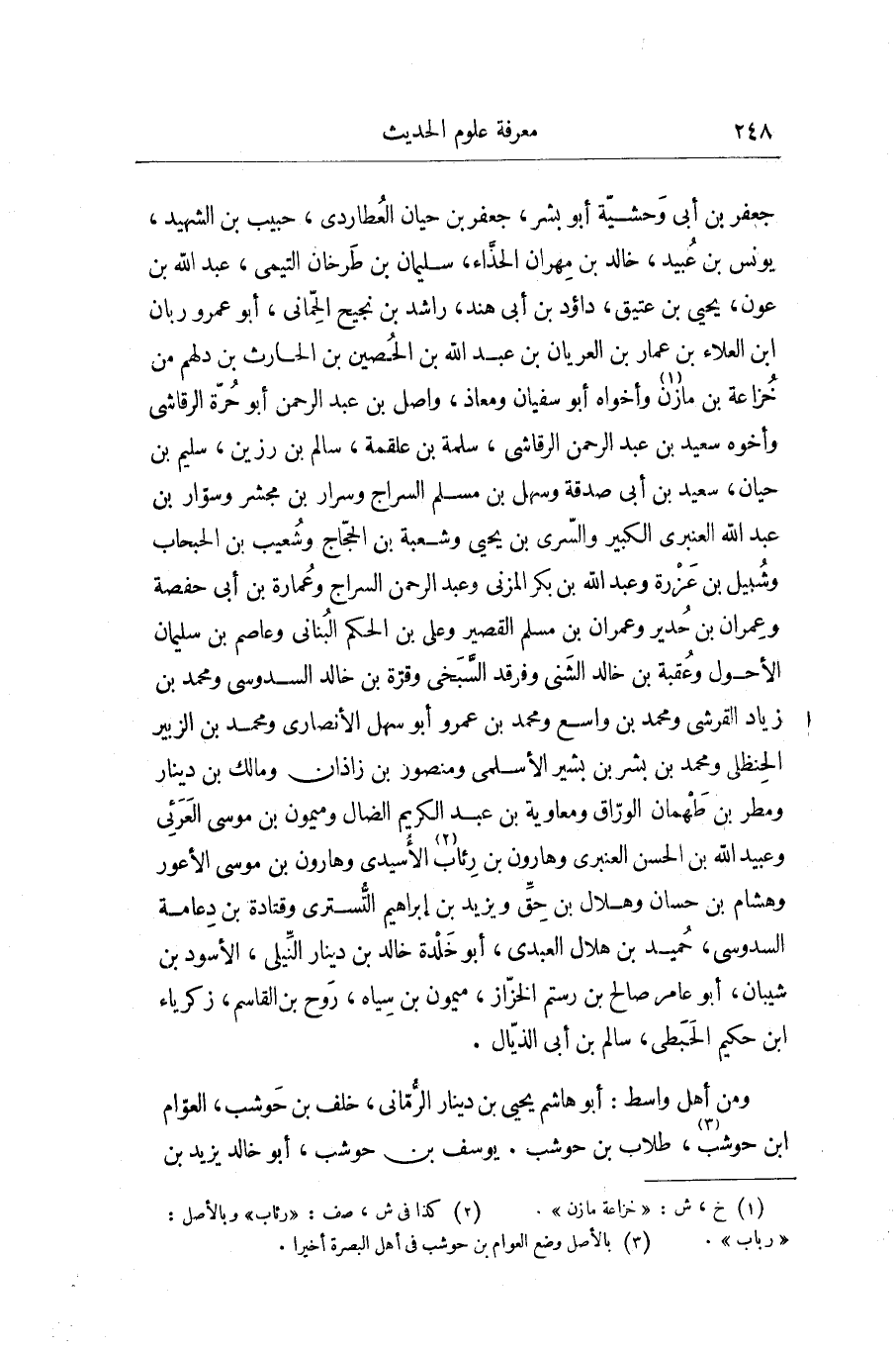 جَعْفَرُ بْنُ أَبِي وَحْشِيَّةَ، أَبُو بِشْرٍ جَعْفَرُ بْنُ حَيَّانَ الْعُطَارِدِيُّ، حَبِيبُ بْنُ الشَّهِيدِ، يُونُسُ بْنُ عُبَيْدٍ، خَالِدُ بْنُ مِهْرَانَ الْحَذَّاءُ، سُلَيْمَانُ بْنُ طَرْخَانَ التَّيْمِيُّ، عَبْدُ اللَّهِ بْنُ عَوْنٍ، يَحْيَى بْنُ عَتِيقٍ، دَاوُدُ بْنُ أَبِي هِنْدَ، رَاشِدُ بْنُ نَجِيحٍ الْحِمَّانِيُّ، أَبُو عَمْرٍو رَبَّانُ بْنُ الْعَلَاءِ بْنِ عَمَّارِ بْنِ الْعُرْيَانِ بْنِ عَبْدِ اللَّهِ بْنِ الْحُصَيْنِ بْنِ الْحَارِثِ بْنِ دَلْهَمَ مِنْ خُزَاعَةَ بْنِ مَازِنٍ، وَأَخَوَاهُ أَبِي سُفْيَانَ وَمُعَاذٍ، وَاصِلُ بْنُ عَبْدِ الرَّحْمَنِ أَبُو حُرَّةَ الرَّقَاشِيُّ، وَأَخُوهُ سَعِيدُ بْنُ عَبْدِ الرَّحْمَنِ الرَّقَاشِيُّ، سَلَمَةُ بْنُ عَلْقَمَةَ، سَالِمُ بْنُ رَزِينٍ، سُلَيْمُ بْنُ حَيَّانَ، سَعِيدُ بْنُ أَبِي صَدَقَةَ، وَسَهْلُ بْنُ مُسْلِمٍ السَّرَّاجُ، وَسِرَارُ بْنُ مُجَشِّرٍ، وَسَوَّارُ بْنُ عَبْدِ اللَّهِ الْعَنْبَرِيُّ الْكَبِيرُ، وَالسَّرِيُّ بْنُ يَحْيَى، وَشُعْبَةُ بْنُ الْحَجَّاجِ، وَشُعَيْبُ بْنُ الْحَبْحَابِ، وَشُبَيْلُ بْنُ عَزْرَةَ، وَعَبْدُ اللَّهِ بْنُ بَكْرٍ الْمُزَنِيُّ، وَعَبْدُ الرَّحْمَنِ السَّرَّاجُ، وَعُمَارَةُ بْنُ أَبِي حَفْصَةَ، وَعِمْرَانُ بْنُ حُدَيْرٍ، وَعِمْرَانُ بْنُ مُسْلِمٍ الْقَصِيرُ، وَعَلِيُّ بْنُ الْحَكَمِ الْبُنَانِيُّ، وَعَاصِمُ بْنُ سُلَيْمَانَ الْأَحْوَلُ، وَعُقْبَةُ بْنُ خَالِدٍ الشَّنِّيُّ، وَفَرْقَدٌ السَّبَخِيُّ، وَقُرَّةُ بْنُ خَالِدٍ السَّدُوسِيُّ، وَمُحَمَّدُ بْنُ زِيَادٍ الْقُرَشِيُّ، وَمُحَمَّدُ بْنُ وَاسِعٍ، وَمُحَمَّدُ بْنُ عَمْرٍو أَبُو سَهْلٍ الْأَنْصَارِيُّ، وَمُحَمَّدُ بْنُ الزُّبَيْرِ الْحَنْظَلِيُّ، وَمُحَمَّدُ بْنُ بِشْرِ بْنِ بَشِيرٍ الْأَسْلَمِيُّ، وَمَنْصُورُ بْنُ زَاذَانَ، وَمَالِكُ بْنُ دِينَارٍ، وَمَطَرُ بْنُ طَهْمَانَ الْوَرَّاقُ، وَمُعَاوِيَةُ بْنُ عَبْدِ الْكَرِيمِ الضَّالُّ، وَمَيْمُونُ بْنُ مُوسَى الْعَرَئِيُّ وَعُبَيْدُ اللَّهِ بْنُ الْحَسَنِ الْعَنْبَرِيُّ، وَهَارُونُ بْنُ رِئَابٍ الْأُسَيِّدِيُّ، وَهَارُونُ بْنُ مُوسَى الْأَعْوَرُ، وَهِشَامُ بْنُ حَسَّانَ، وَهِلَالُ بْنُ حِقِّ، وَيَزِيدُ بْنُ إِبْرَاهِيمَ التُّسْتَرِيُّ، وَقَتَادَةُ بْنُ دِعَامَةَ السَّدُوسِيُّ، حُمَيْدُ بْنُ هِلَالٍ الْعَبْدِيُّ، أَبُو خَلْدَةَ خَالِدُ بْنُ دِينَارٍ النِّيلِيُّ، الْأَسْوَدُ بْنُ شَيْبَانَ، أَبُو عَامِرٍ صَالِحُ بْنُ رُسْتُمَ الْخَزَّازُ، مَيْمُونُ بْنُ سِيَاهٍ، رَوْحُ بْنُ الْقَاسِمِ، زَكَرِيَّا بْنُ حَكِيمٍ الْحَبَطِيُّ، سَالِمُ بْنُ أَبِي الذَّيَّالِ وَمِنْ أَهْلِ الْوَاسِطِ: أَبُو هَاشِمٍ يَحْيَى بْنُ دِينَارٍ الرُّمَّانِيُّ، خَلَفُ بْنُ حَوْشَبٍ، الْعَوَّامُ بْنُ حَوْشَبٍ، طِلَابُ بْنُ حَوْشَبٍ، يُوسُفُ بْنُ حَوْشَبٍ، أَبُو خَالِدٍ يَزِيدُ بْنُ
