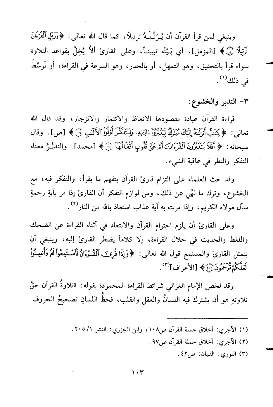 (¬1) الآجري: أخلاق حملة القرآن ص 108، وابن الجزري: النشر 1/ 205.