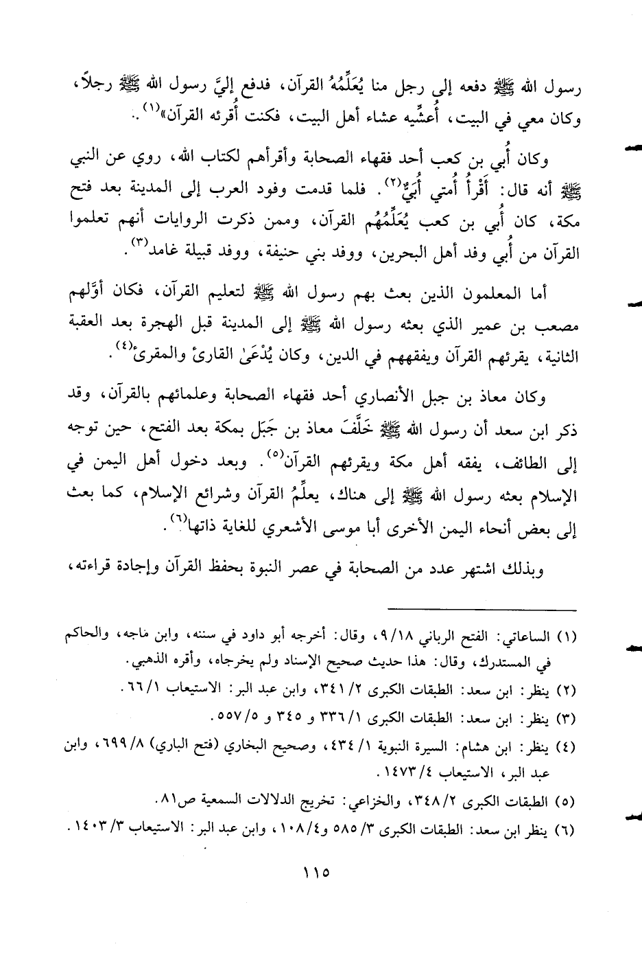 وبذلك اشتهر عدد من الصحابة في عصر النبوة بحفظ القرآن وإجادة قراءته،