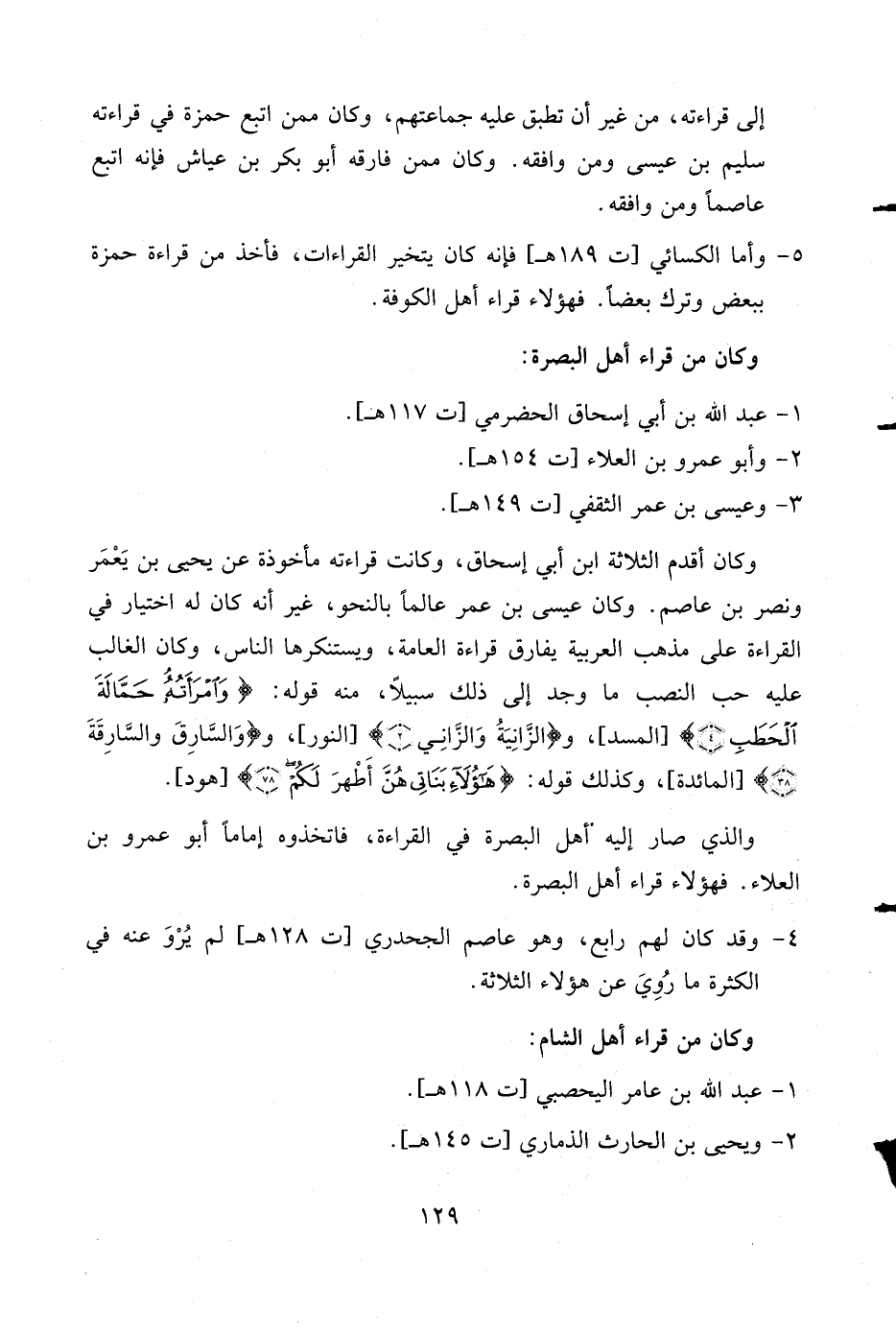 5 - وأما الكسائي [ت 189 هـ] فإنه كان يتخير القراءات، فأخذ من قراءة حمزة ببعض وترك بعضا. فهؤلاء قراء أهل الكوفة.