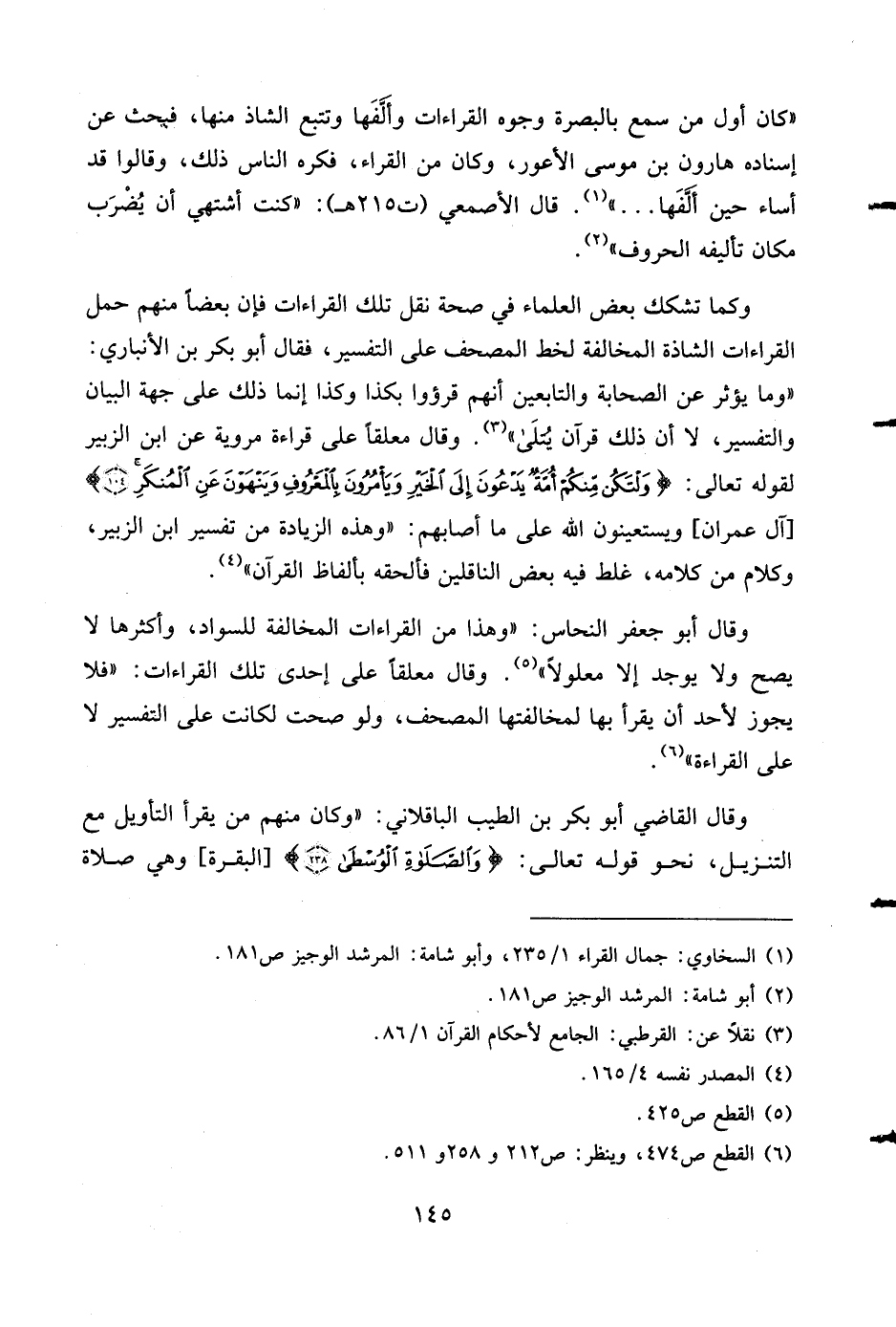 (¬1) السخاوي: جمال القراء 1/ 235، وأبو شامة: المرشد الوجيز ص 181.