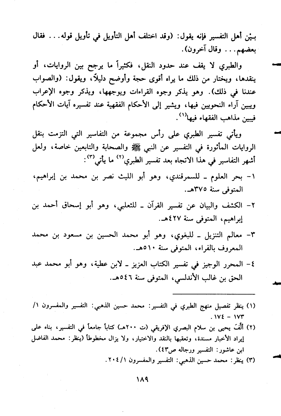 (¬1) ينظر تفصيل منهج الطبري في التفسير: محمد حسين الذهبي: التفسير والمفسرون 1/ 173 - 174.