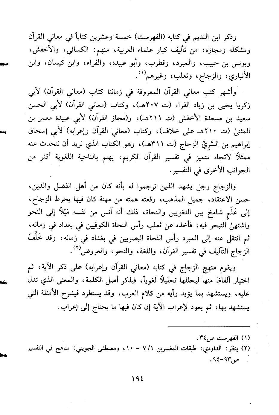 (¬2) ينظر: الداودي: طبقات المفسرين 1/ 7 - 10، ومصطفى الجويني: مناهج في التفسير ص 93 - 94.