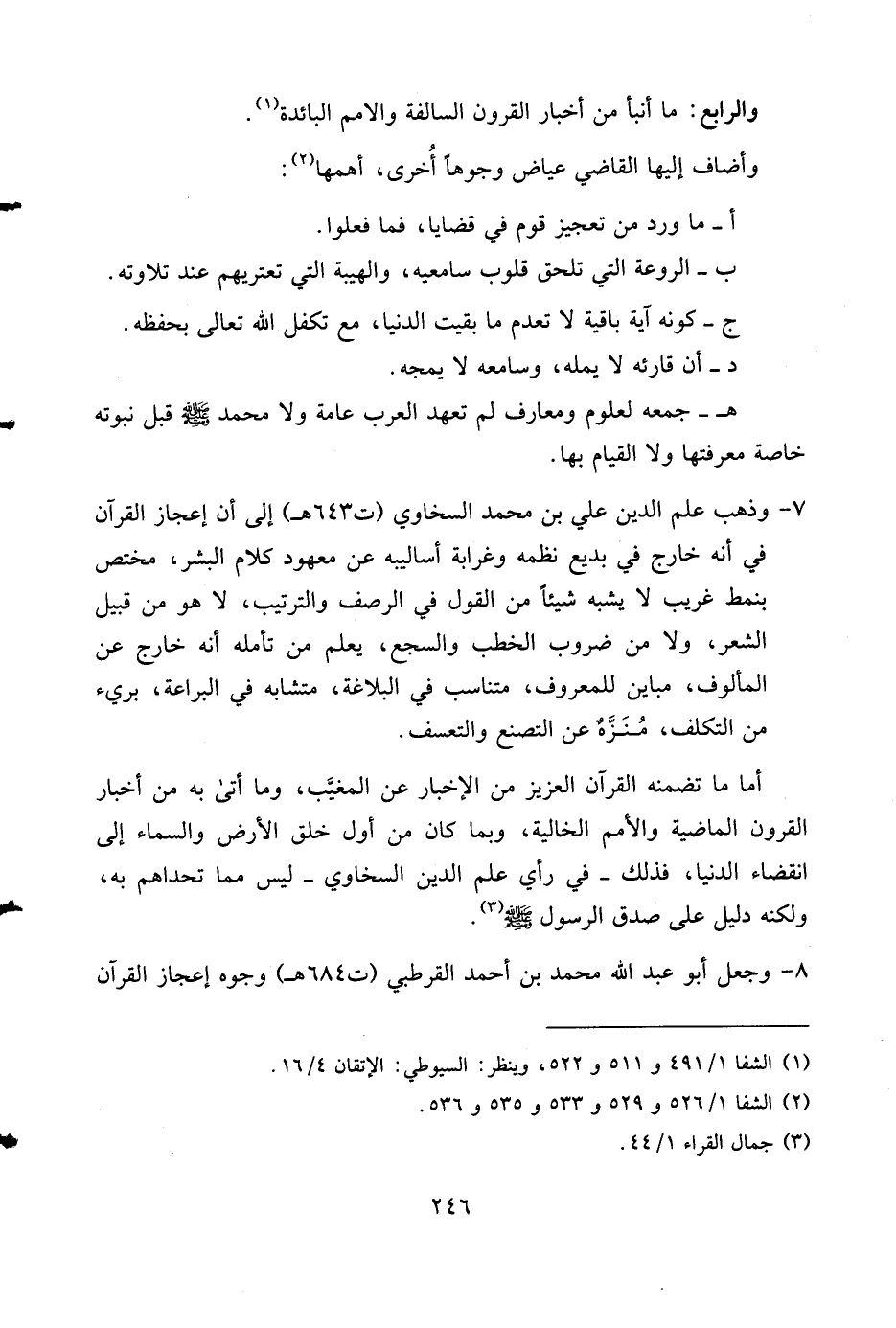 (¬1) الشفا 1/ 491 و 511 و 522، وينظر: السيوطي: الإتقان 4/ 16.