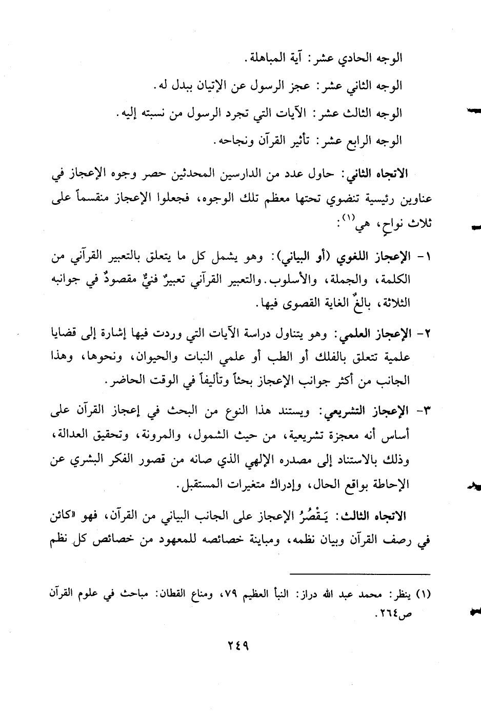 (¬1) ينظر: محمد عبد الله دراز: النبأ العظيم 79، ومناع القطان: مباحث في علوم القرآن ص 264.