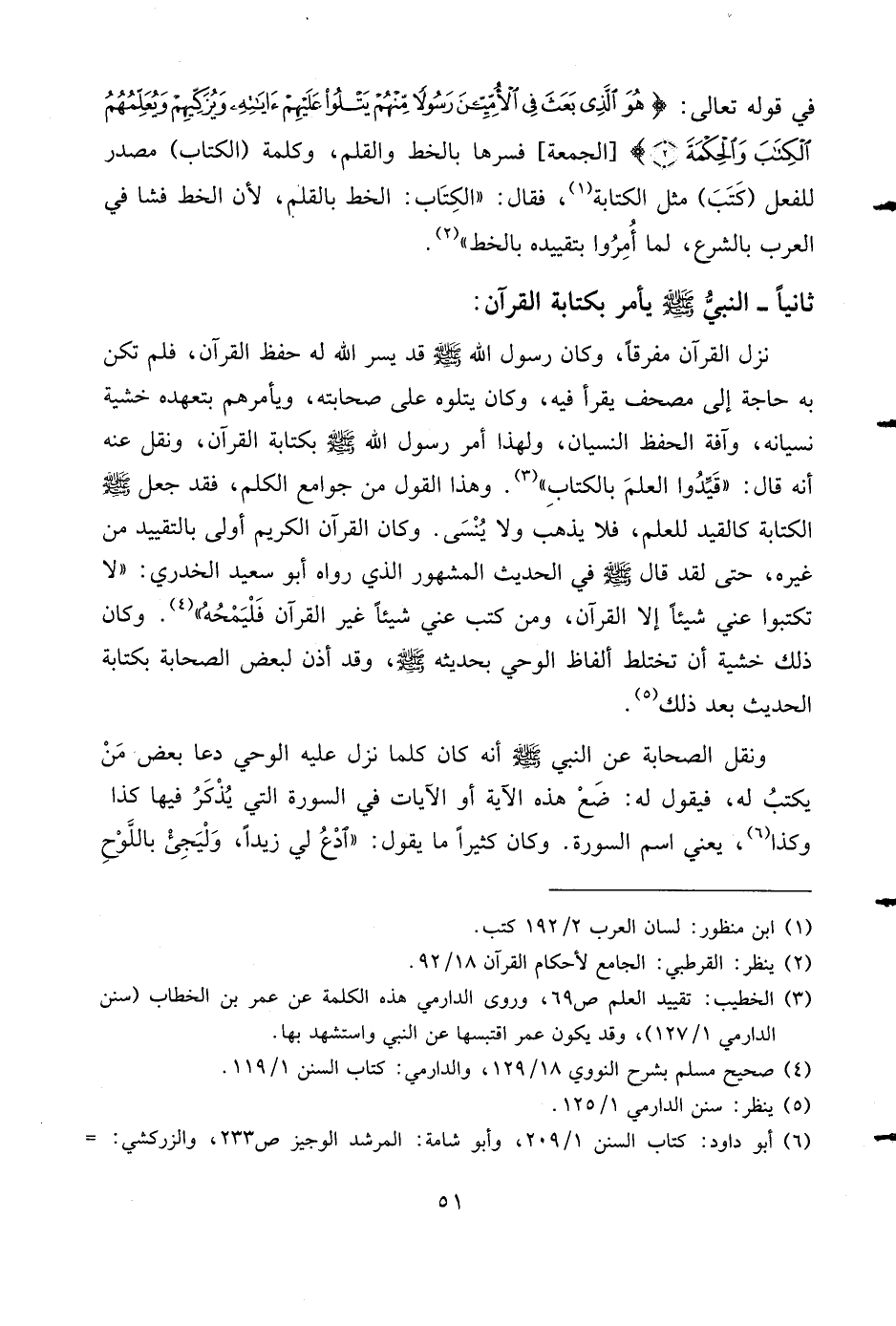 ثانيا- النبيّ صلى الله عليه وسلم يأمر بكتابة القرآن:
