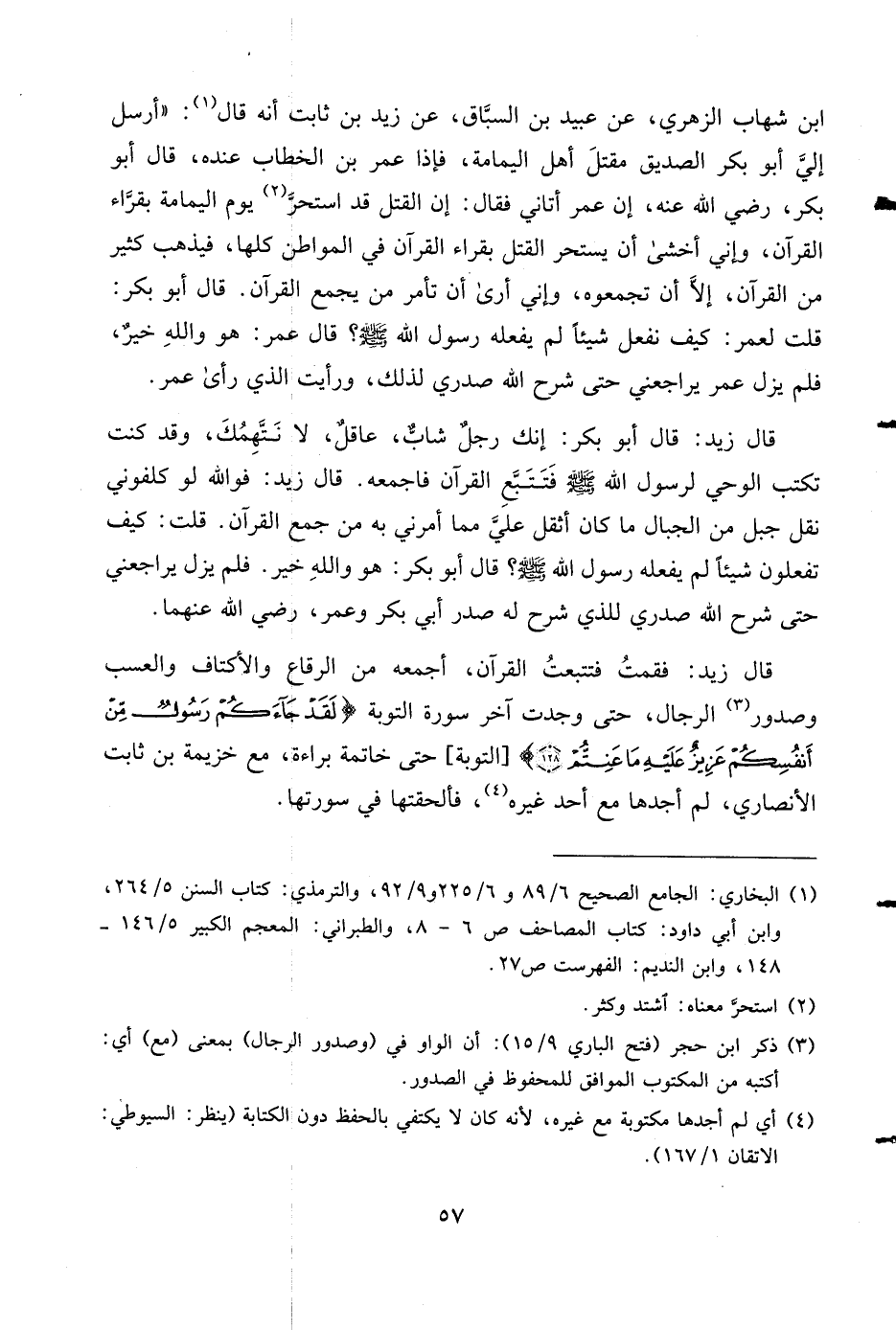 (¬1) البخاري: الجامع الصحيح 6/ 89 و 6/ 225 و 9/ 92، والترمذي: كتاب السنن 5/ 264، وابن أبي داود: كتاب المصاحف ص 6 - 8، والطبراني: المعجم الكبير 5/ 146 - 148، وابن النديم: الفهرست ص 27.