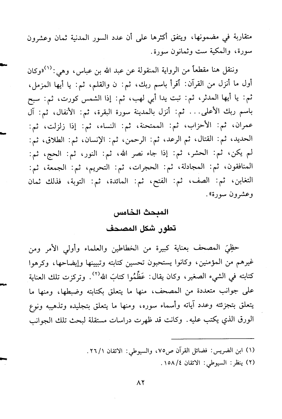 (¬1) ابن الضريس: فضائل القرآن ص 75، والسيوطي: الاتقان 1/ 26.