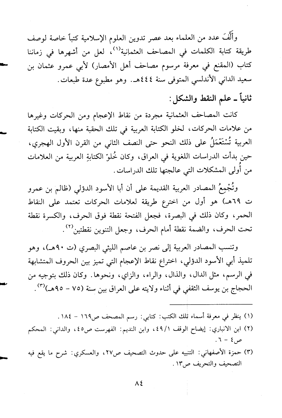 (¬2) ابن الانباري: إيضاح الوقف 1/ 49، وابن النديم: الفهرست ص 45، والداني: المحكم ص 4 - 6.
