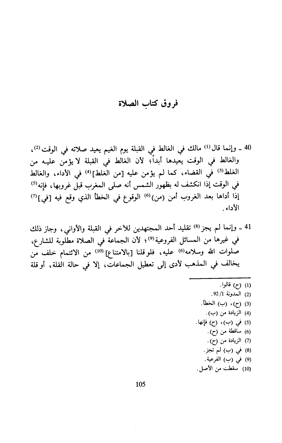 فروق كتاب الصلاة