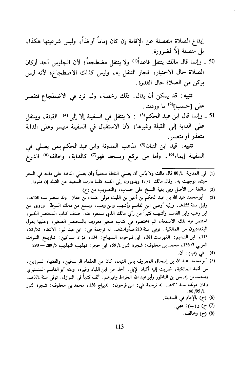(¬1) في المدونة 1/ 80 قال مالك ولا بأس أن يصلي النافلة محتبيًا وأن يصلي النافلة على دابته في السفر حيثما توجهت به. وقال مالك 1/ 17 ويدورون إلى القبلة كلما دارت السفينة عن القبلة إن قدروا.