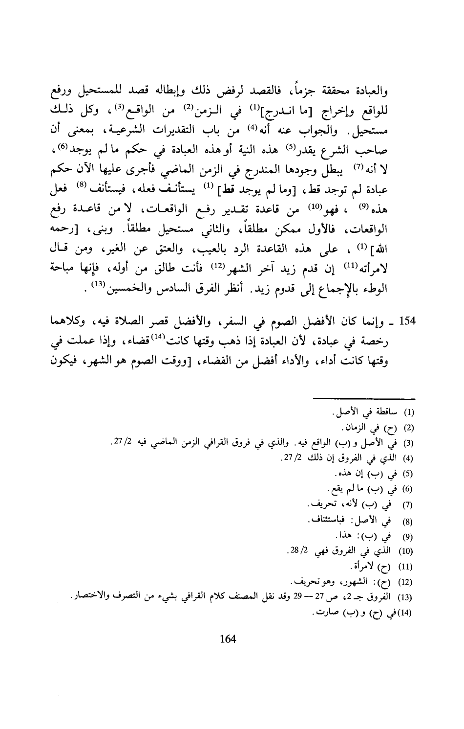 (¬13) الفروق جـ 2، ص 27 - 29 وقد نقل المصنف كلام القرافي بشيء من التصرف والاختصار.